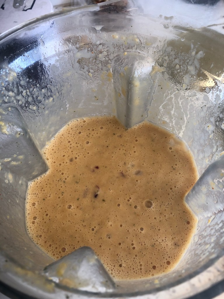 I added in 2 tbsp of gluten free flour, 1/2 tsp pepper, 1 tbsp nutritional yeast, 1/2 tsp cumin, 1 tsp old bay seasoning, and 1 bouillon cube.