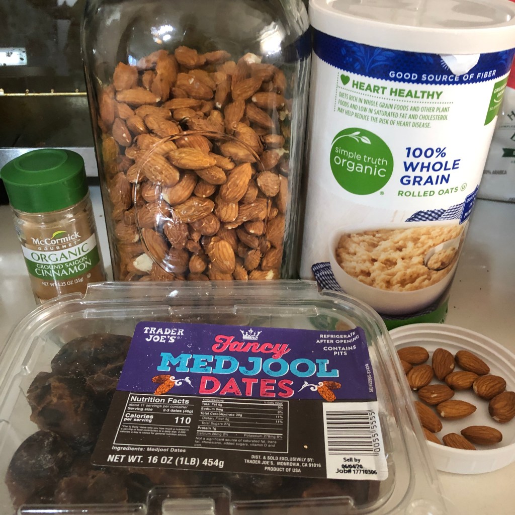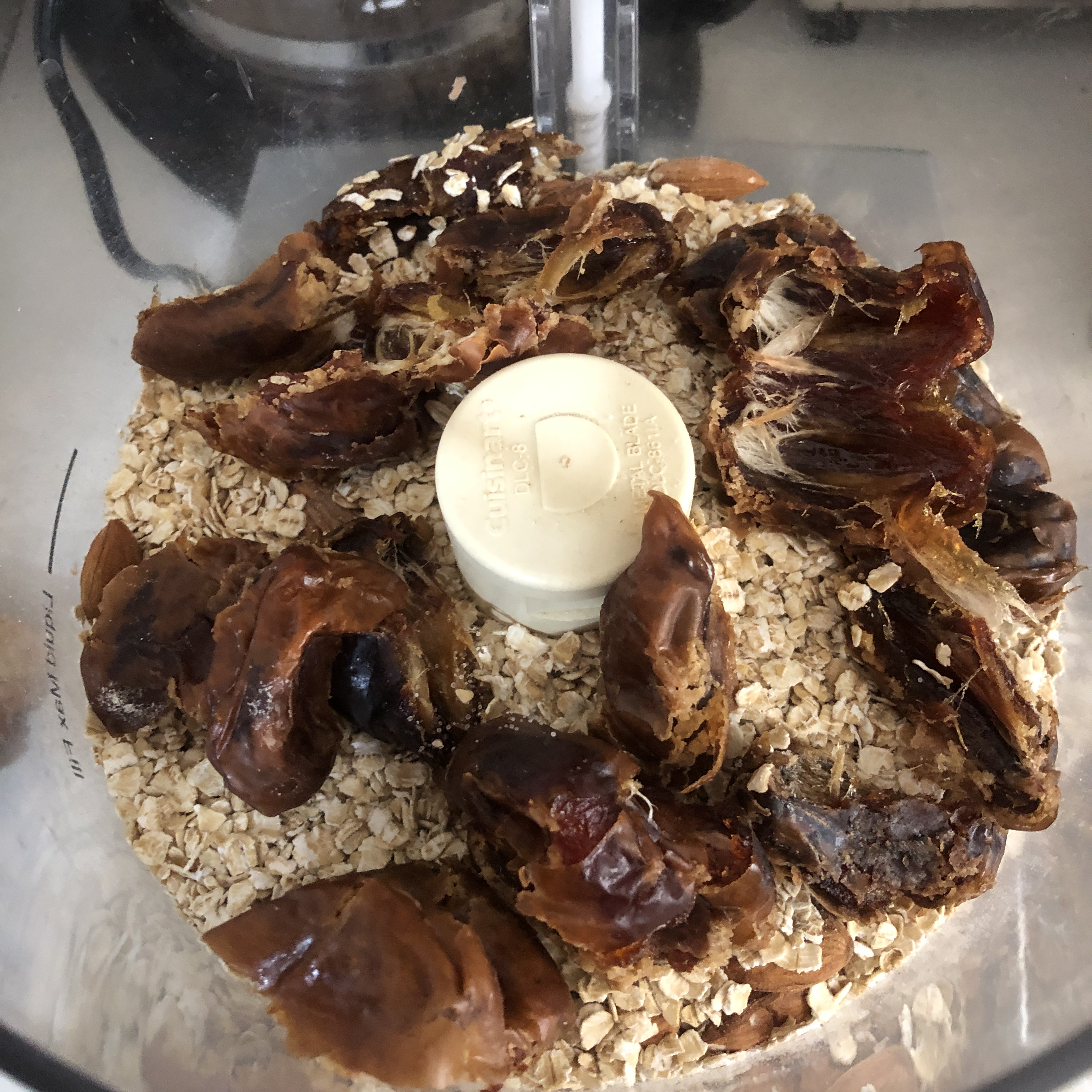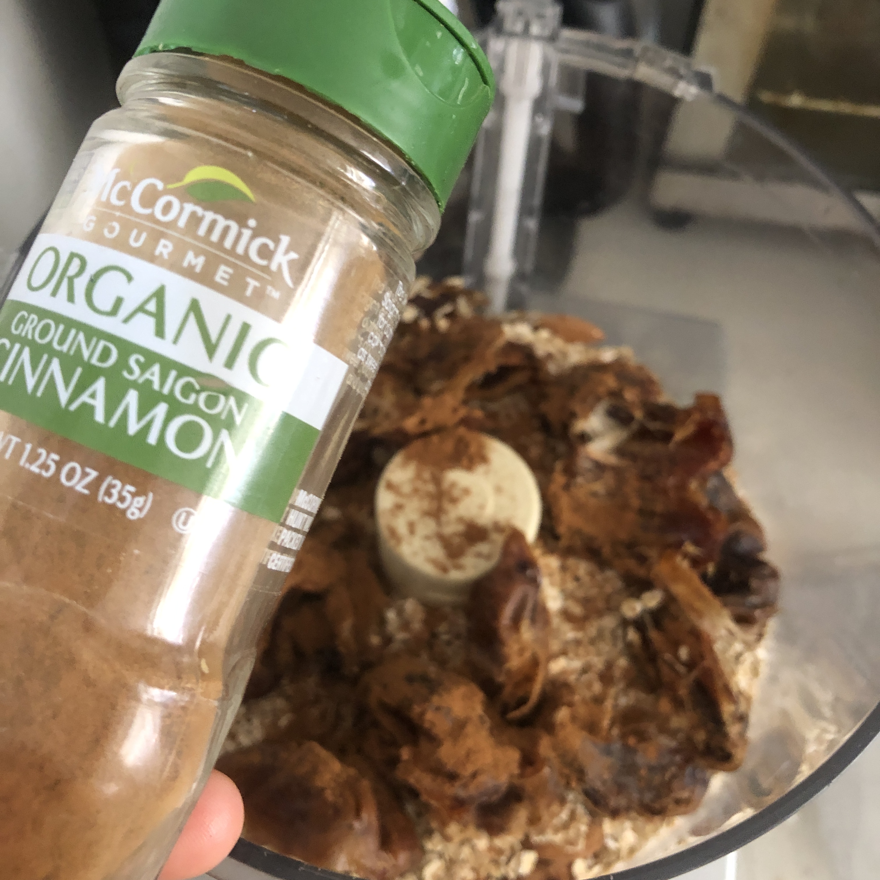 Then I put in a cup of oats, cinnamon, a dash of sea salt, and a cup of dates on top.