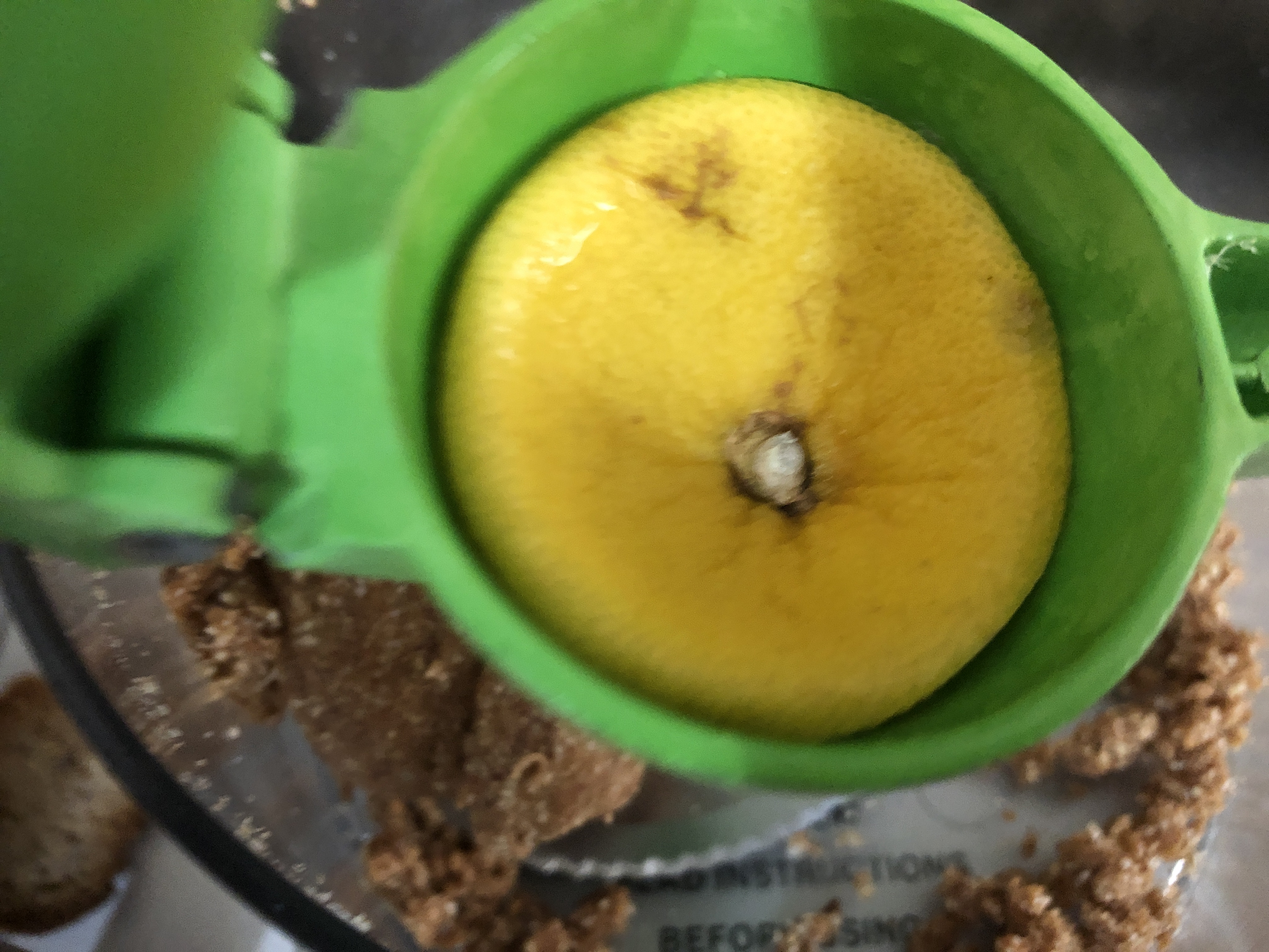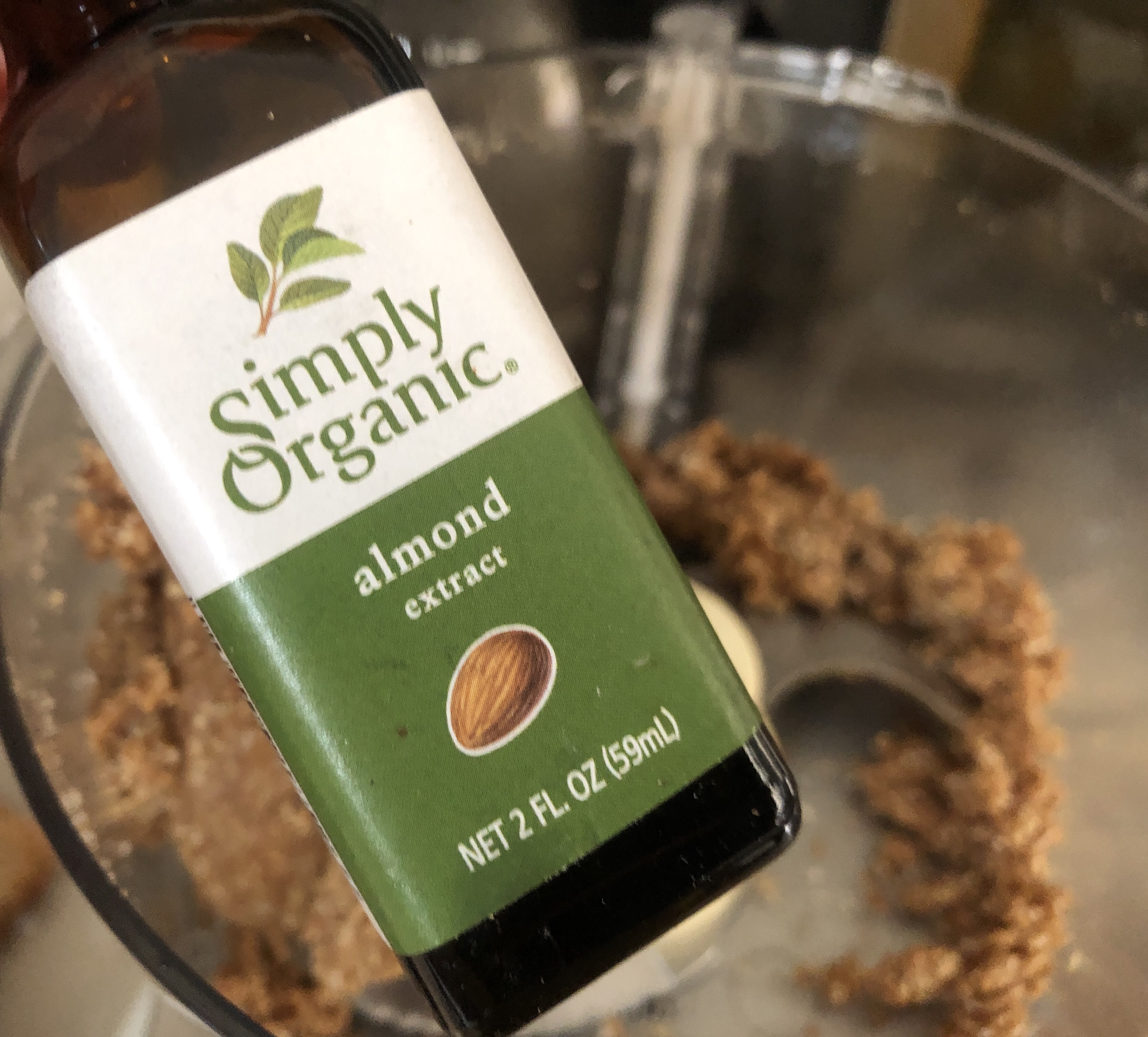 Start pulsing, and blend until it starts to get crumbly. I squeezed in 1/2 a lemon, and 1 tsp almond extract.