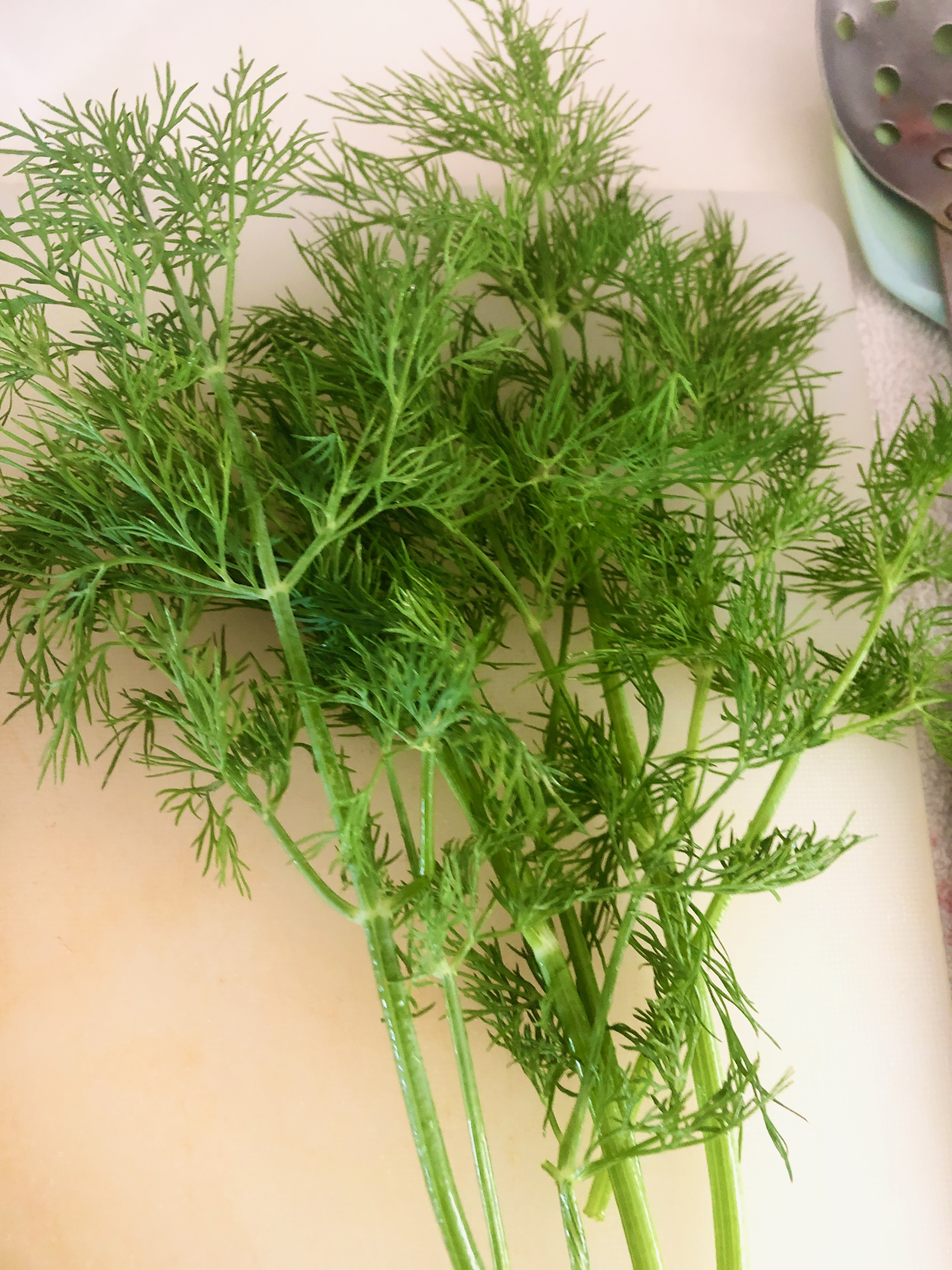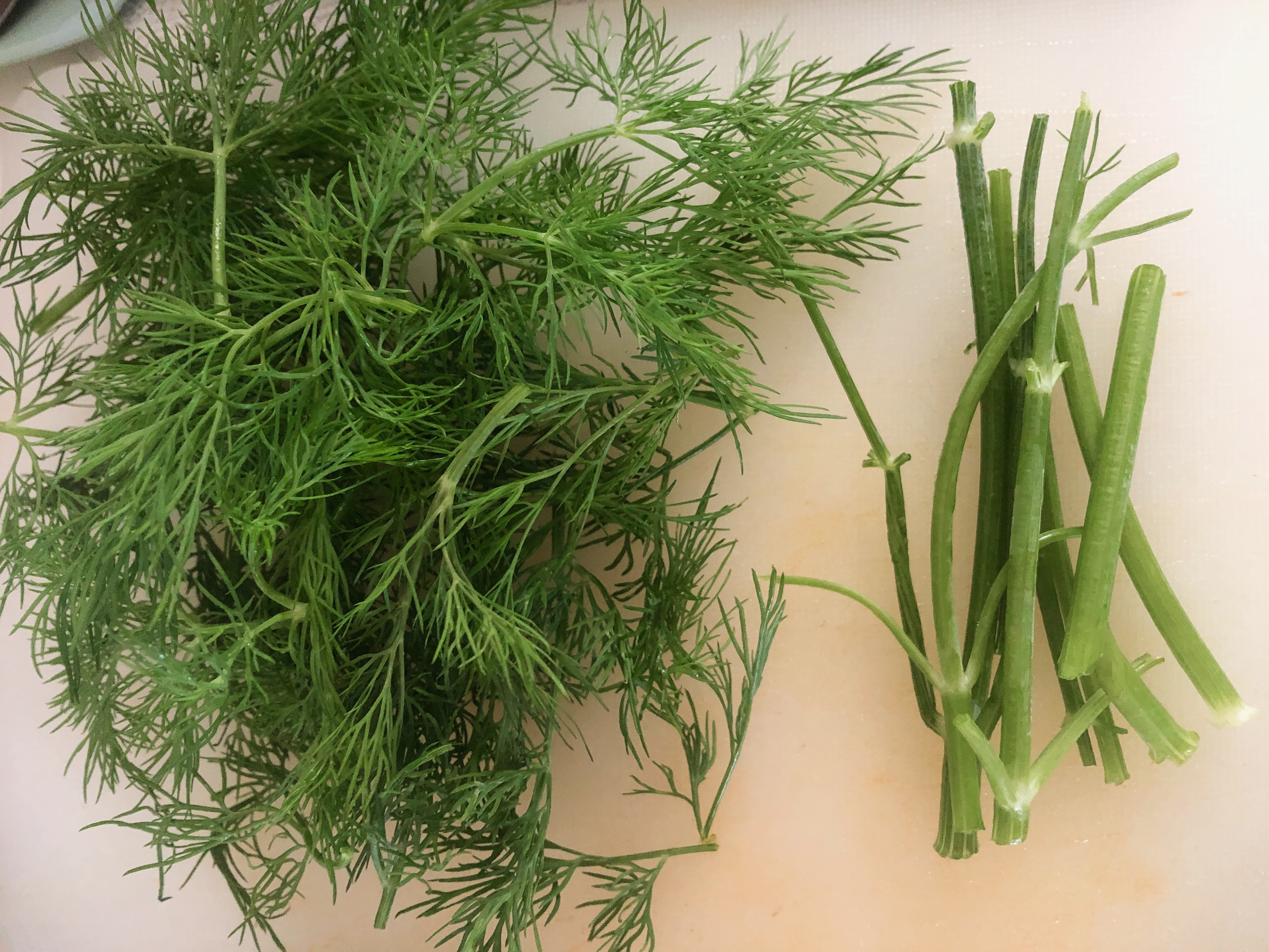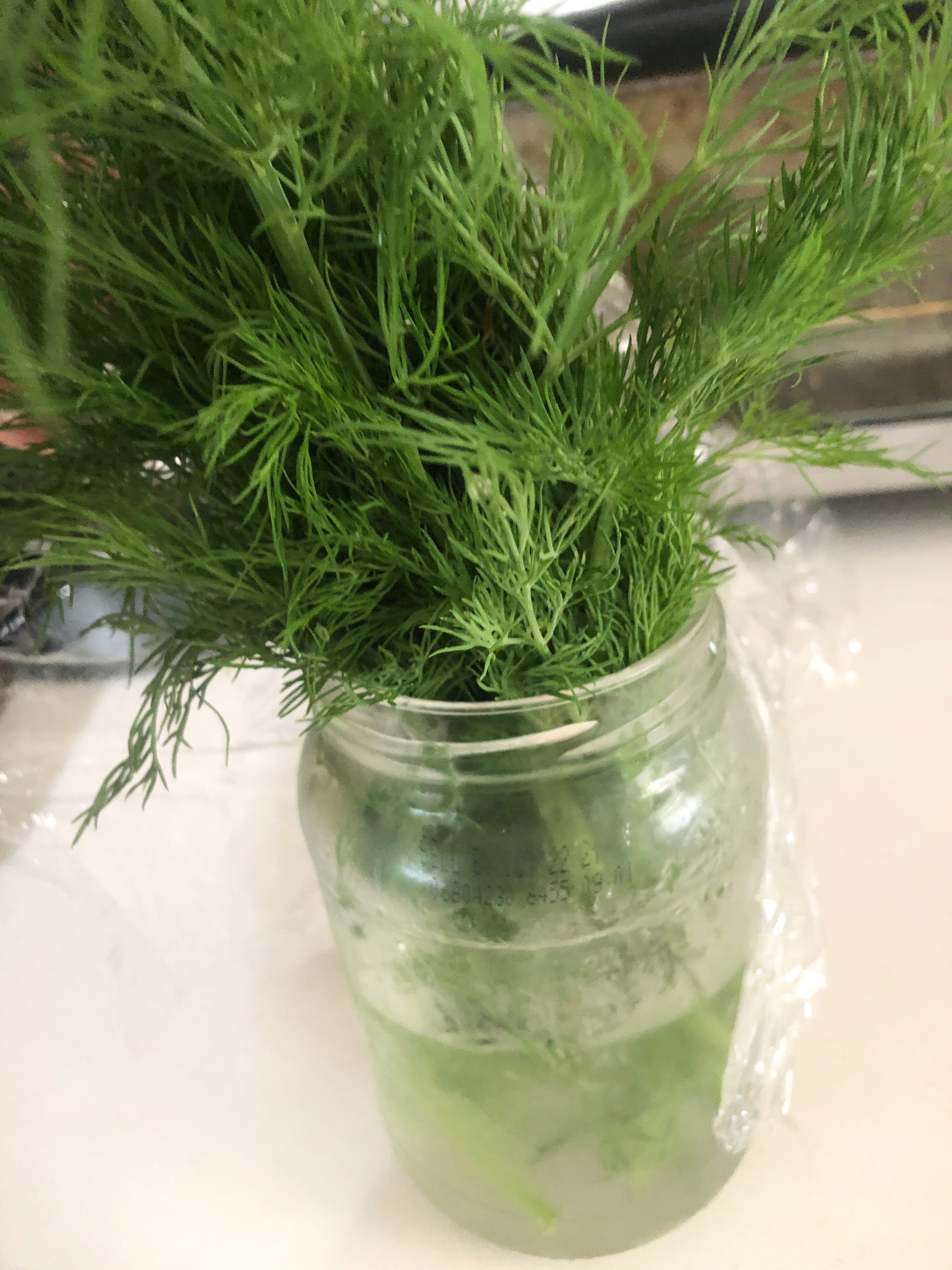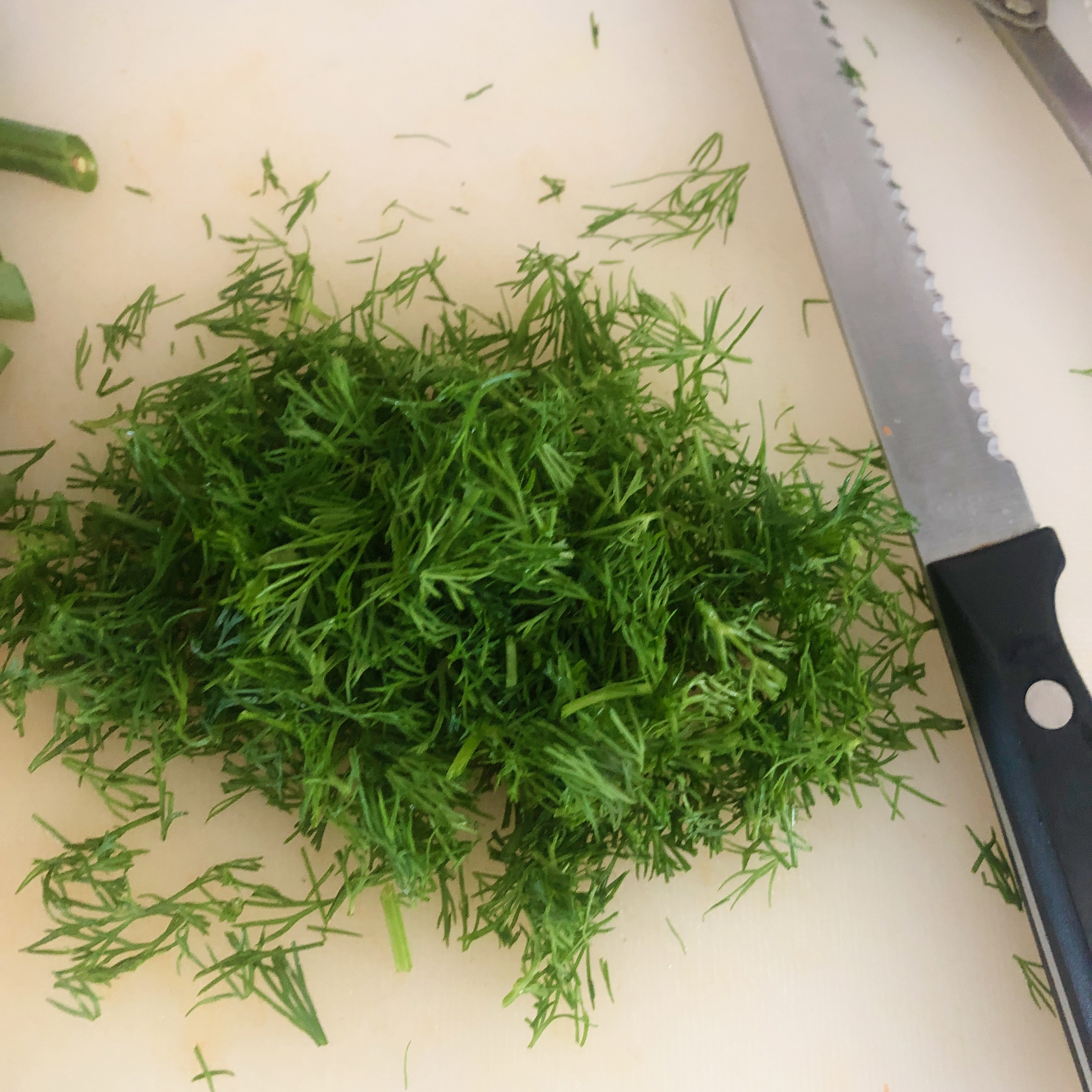 Next chop your dill. I like to store mine in a jar in the fridge, covered to keep it fresh.