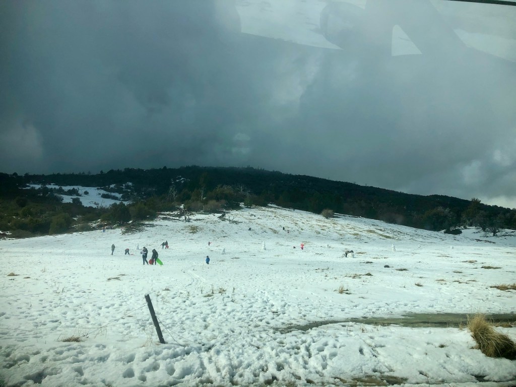 I drive further south past frozen Lake Cuyamaca, and see many folks sledding on the hillsides to my right, and parked all along the road.