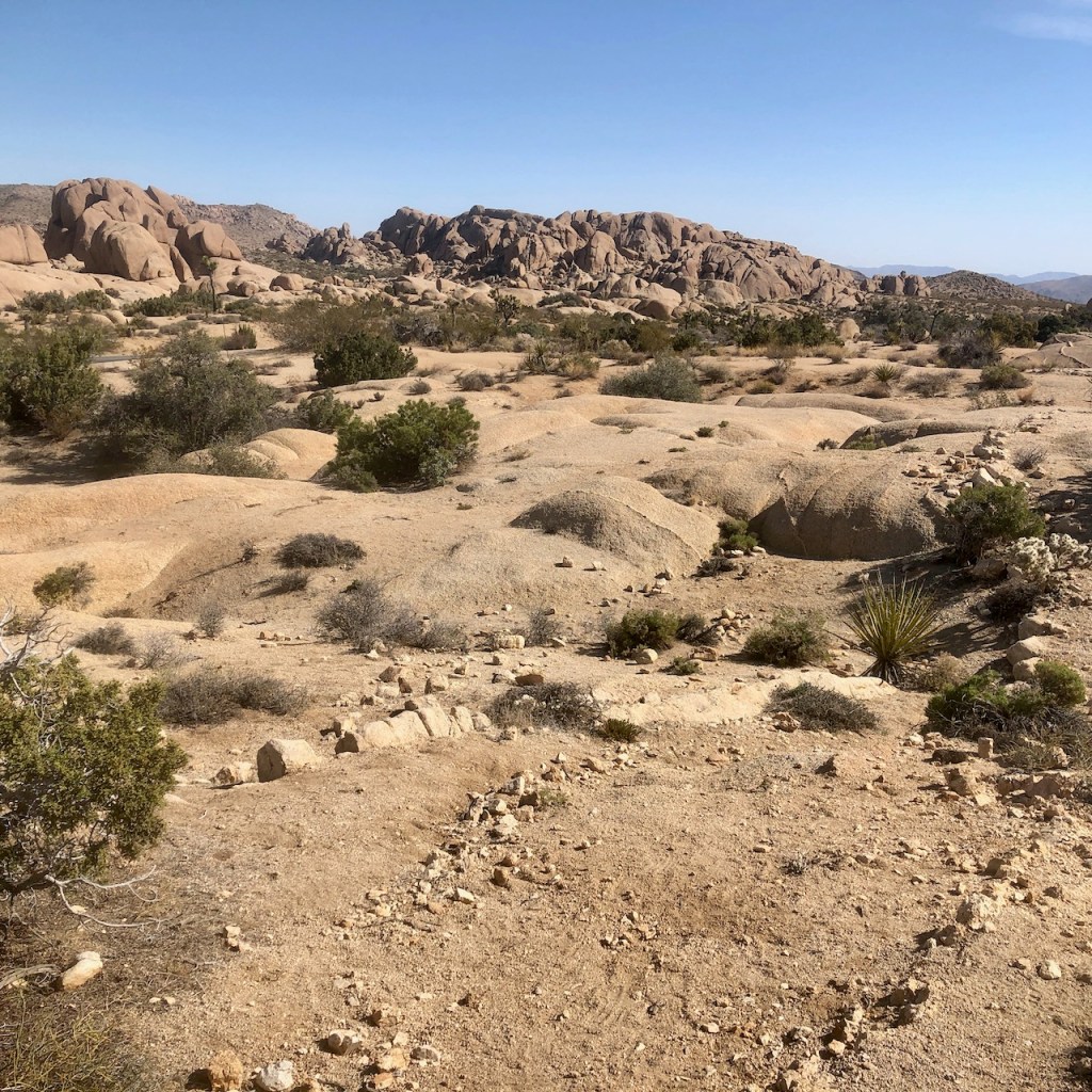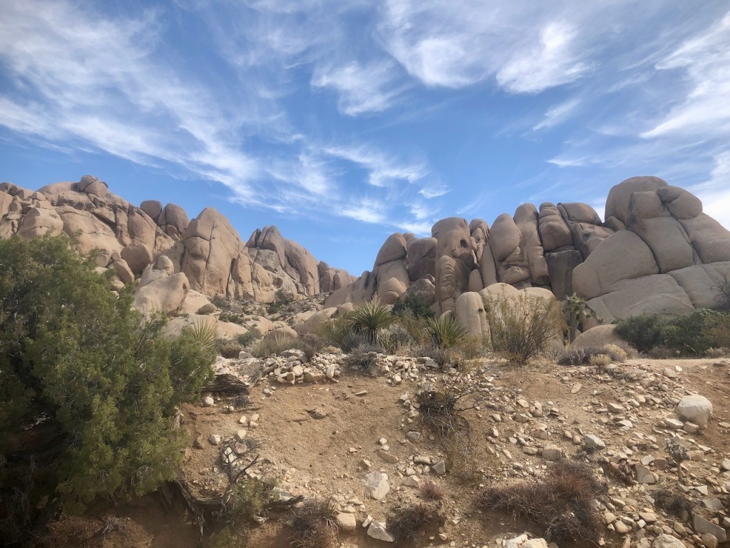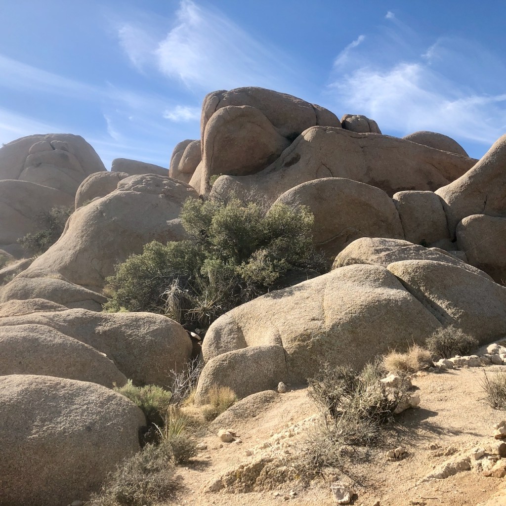 The hike began alongside the campground, on the Jumbo Rocks Campground Loop trail. It is sparsely marked, and I was glad to have alltrails downloaded. I planned on a stop at Skull Rock, before crossing the road, to begin the Arch Rock Loop.