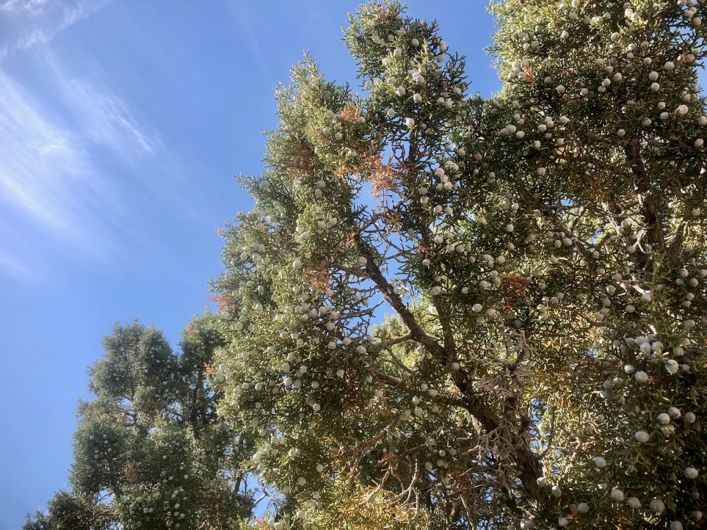 I passed a large number of twisted looking interesting juniper trees. They were very green, and stay evergreen, even here in the high desert.