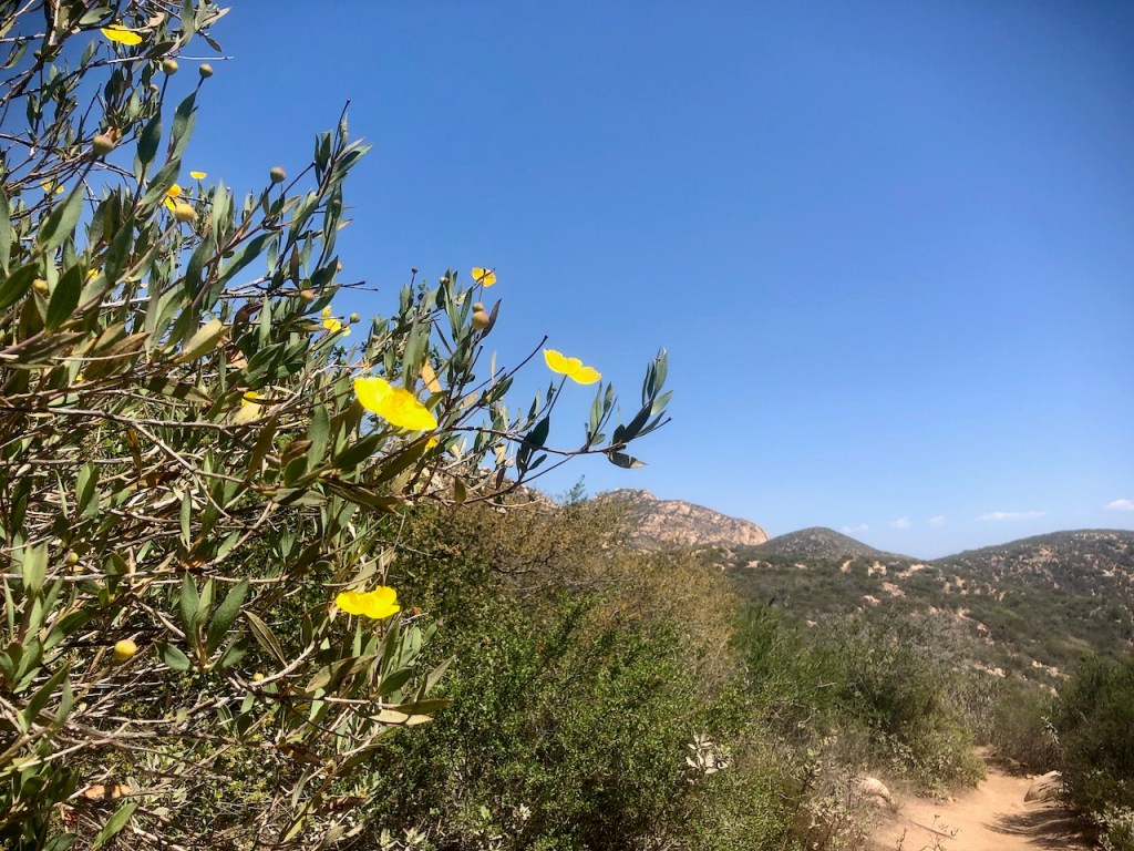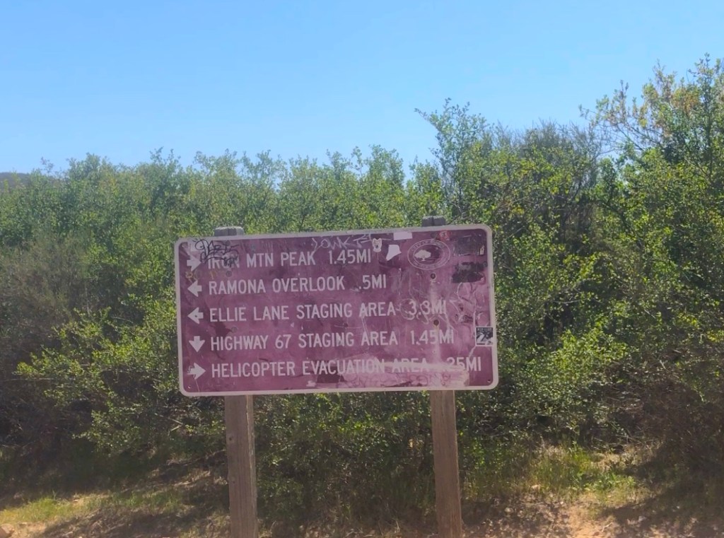 If it’s a cool winter or early spring day, I would definitely try the Ellie Lane Loop Trail, next time I visit. Inland San Diego hikes at lower elevations like Iron Mountain are best hiked when it is in the 50’s and 60’s. It was so baking hot, and crowded this time here in spring. That is something I will keep in mind, in planning future hikes in the area.