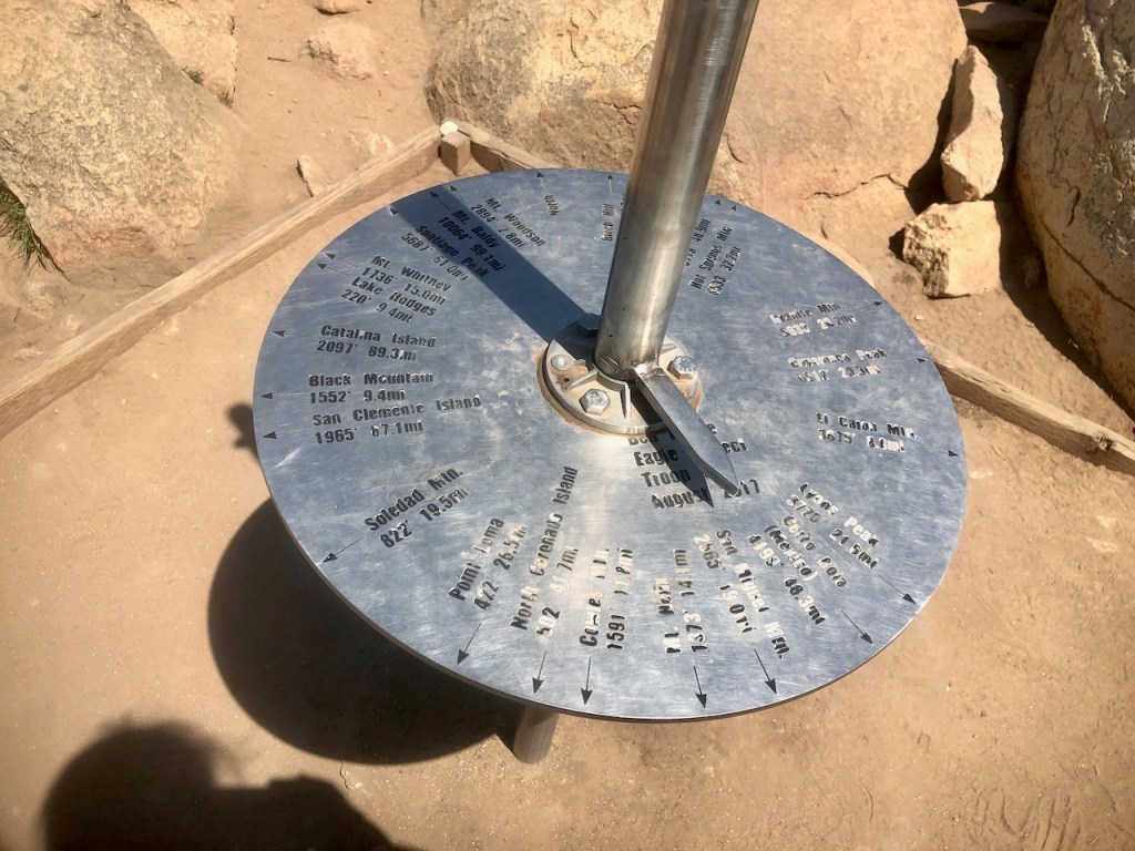 There is an interesting iron lightening rod, with a rotating dial, with arrows, that will tell you exactly all the summits in the area, which was a lot of fun to see.