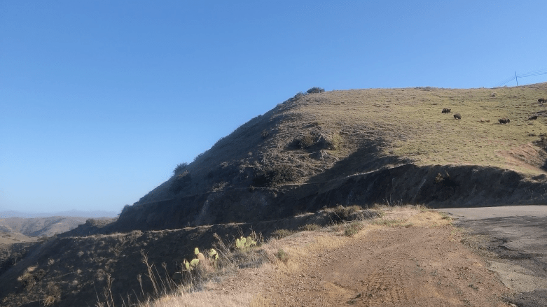At the bottom of the cliff I sighed, since it was a complete drop off of maybe 15-20 feet, where the road was cut into the hillside, straight down. My only option was to crawl through a bush, along a one foot animal trail, holding on to the bush for dear life. I somehow got through that part, and found a way to create my own switchback down to the road.