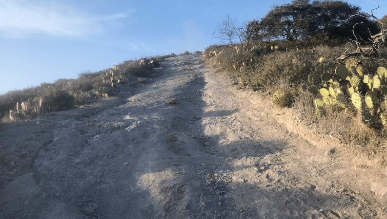 The mile to the trailhead was uphill the entire way. My pack for this trip weighed in around 20 lbs plus water weight. Since I was carrying (4.5 liters), that added 9 lbs.