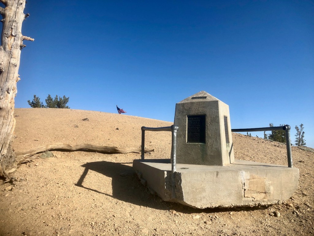 I was finally at the summit of Mount Baden Powell, elevation 9384 feet! There was just one person leaving the area as I arrived, who I congratulated. I proceeded on past the unique peak marker, set firmly in a concrete obelisk.