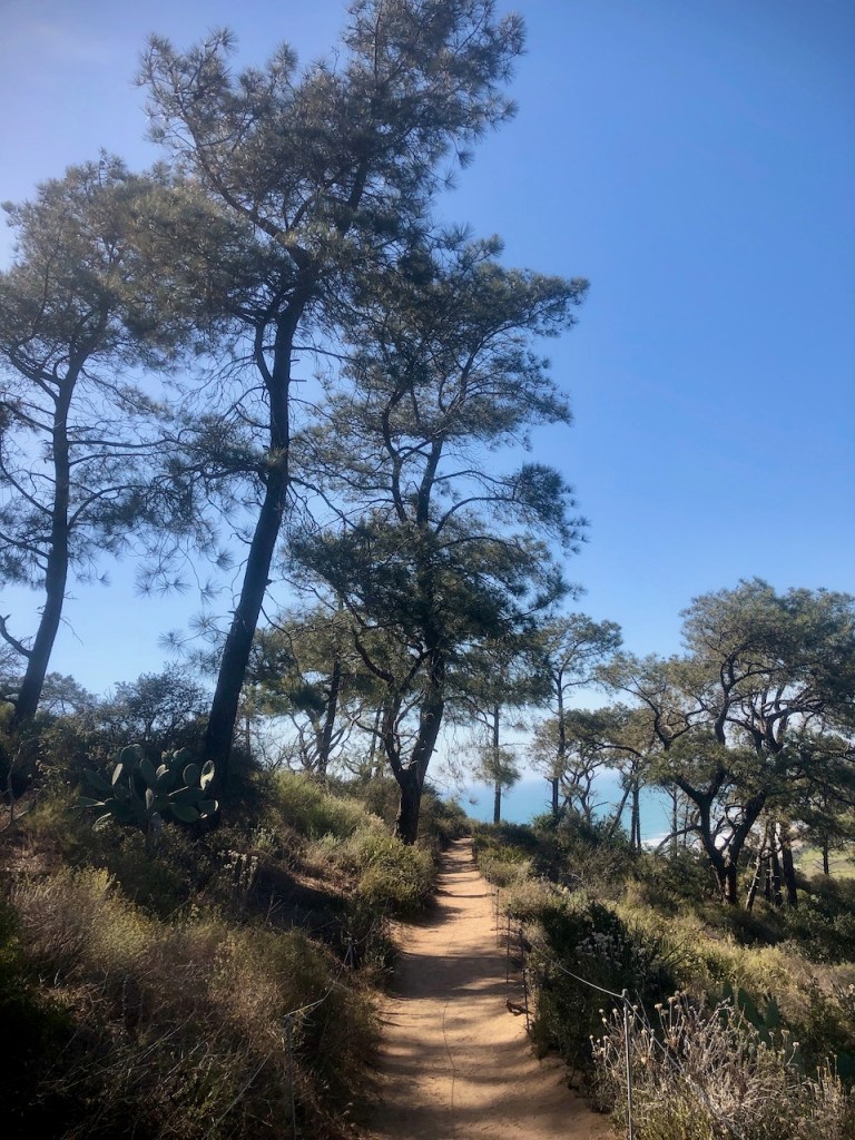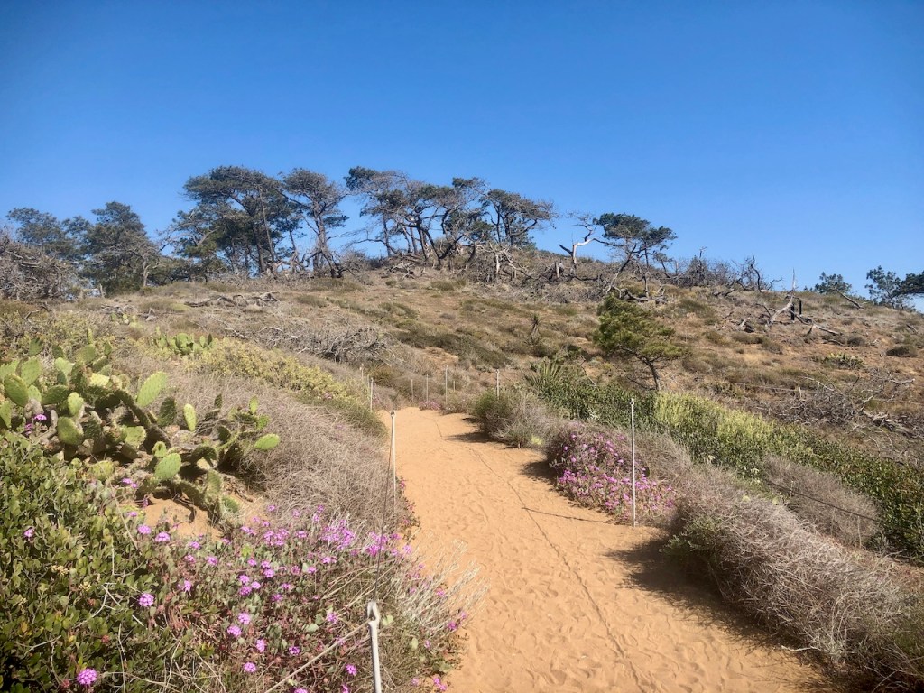The trail continued on towards the coastal bluffs with blue waters of the Pacific in the backdrop.
