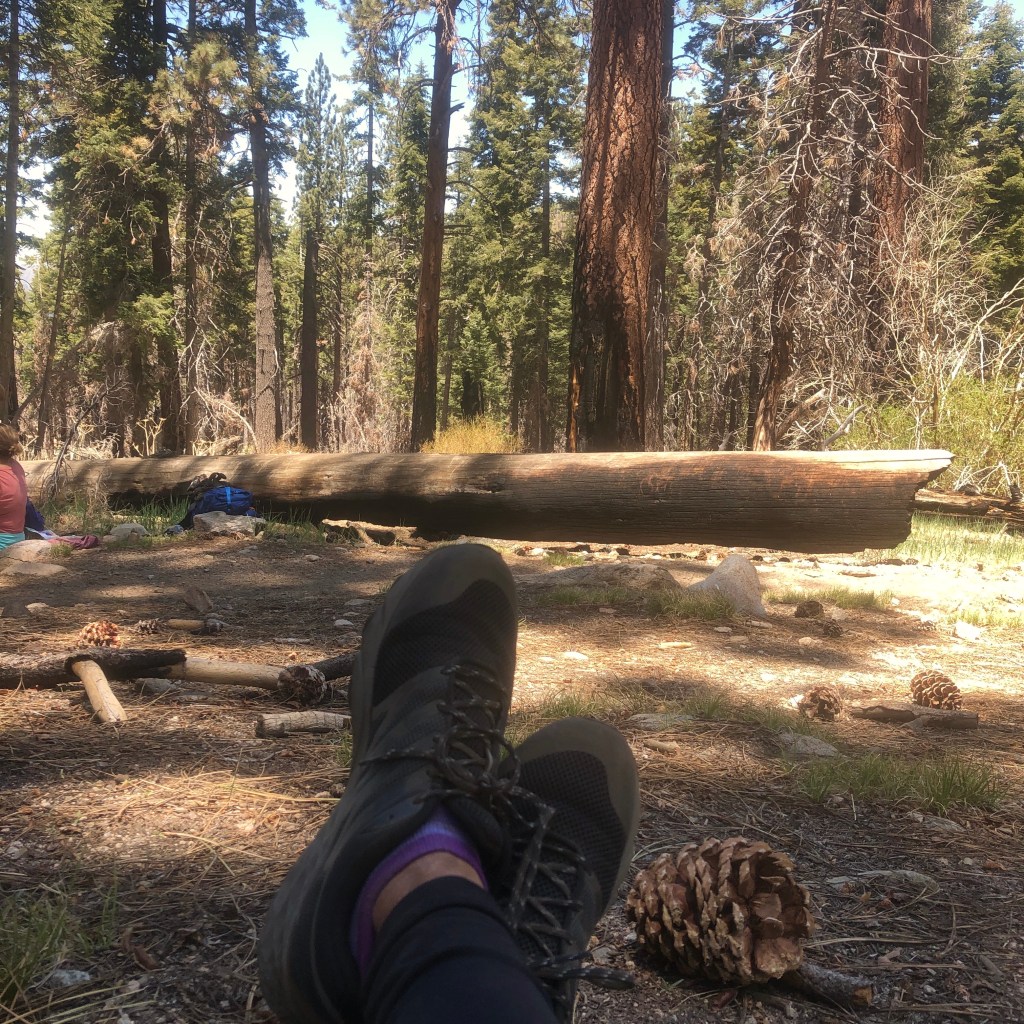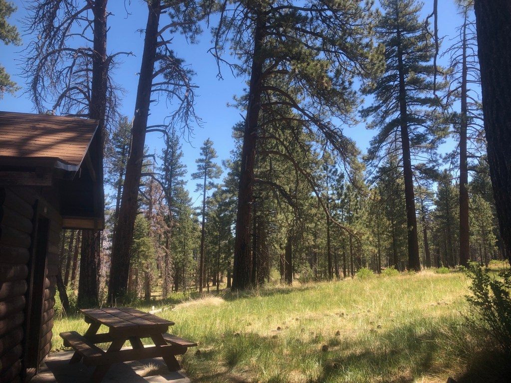 We arrived at a cabin, and Horseshoe Meadow. There was a picnic table there to take our packs off and rest. We took a snack break here in the shade, and took off our packs. When you backpack, even resting for 5 minutes is beneficial for avoiding injury.