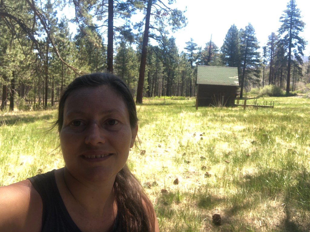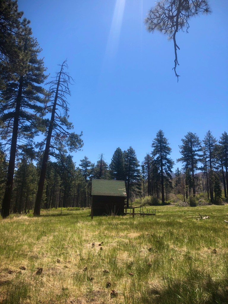 This was such a warm sunny meadow. I could have hiked here on any given day, just to enjoy this view. This cabin behind me has some history behind it. It was saved by firefighters during the Lake Fire in 2015.
