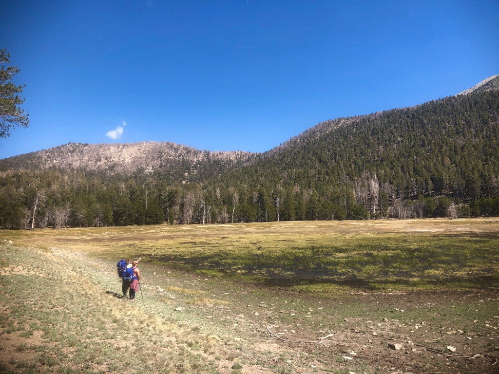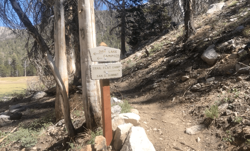 Finally we made it to Dry Lake, about 8 miles in and 3000 feet of gain approximately, the turn off for Dry Lake. We had just a bit further to go to the summit, but we would save it for the next morning.
