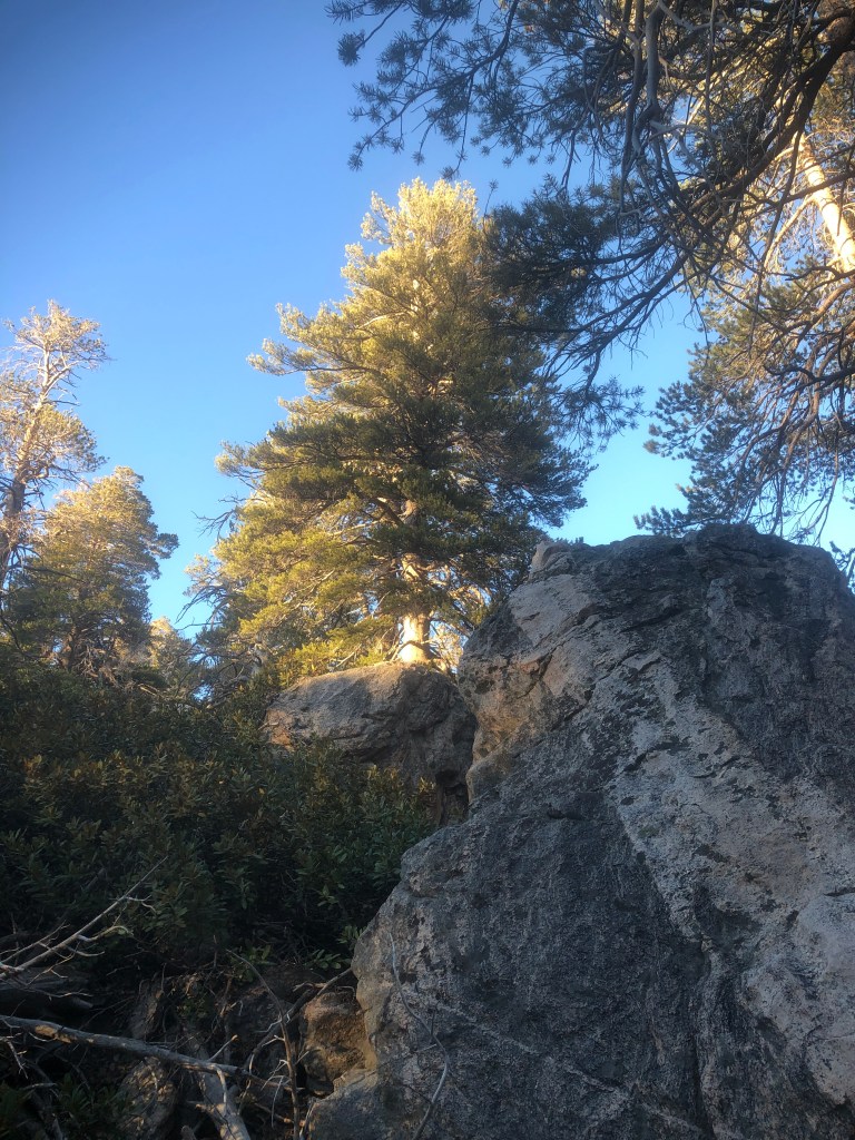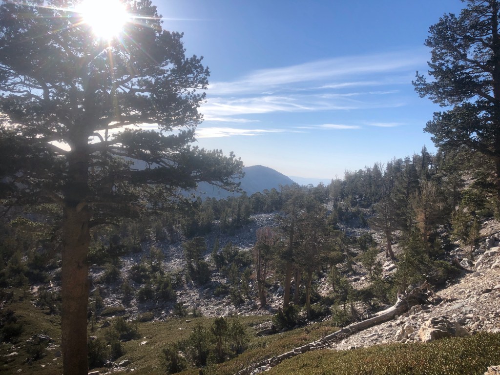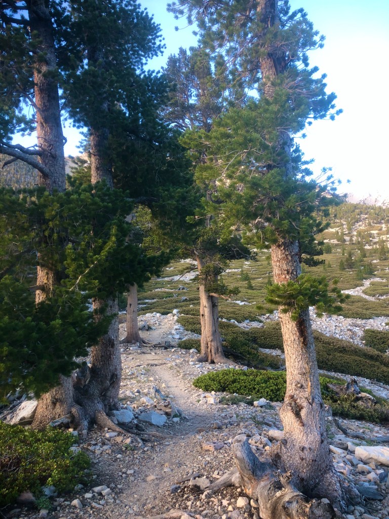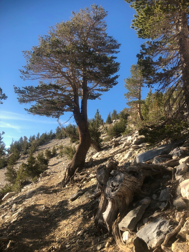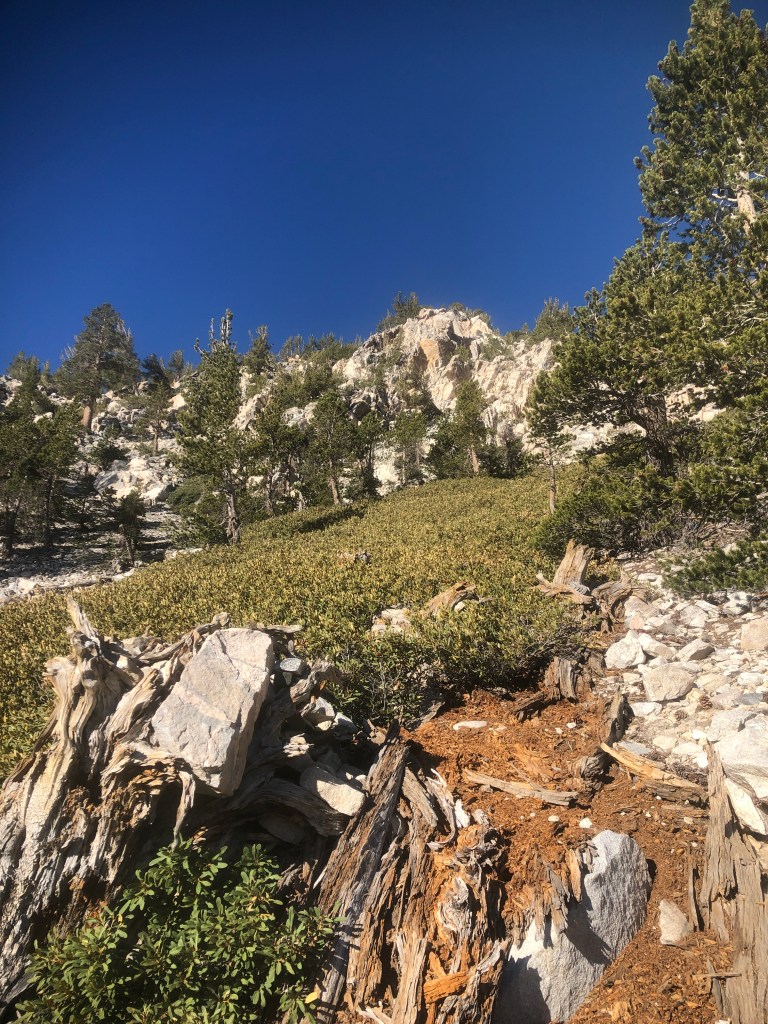 The trees of the South Fork Trail to Mt San Gorgonio included: Lodgepole Pine, Jeffrey Pine, Coulter Pine, Limber Pine, White Pine, Incense Cedar, Pinyon, White Fir , Black Oak, Holly, Scrub Oak, Live Oak, Hollyleaf Cherry, Manzanita, and Mountain Whitethorn,