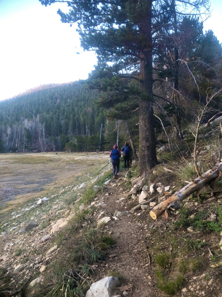 As we hiked on the trail grew more rocky as we climbed above 9,000 ft of elevation. It was a true alpine environment. There were few plants, and mostly pines, cedars, and hardy low growing shrubs.