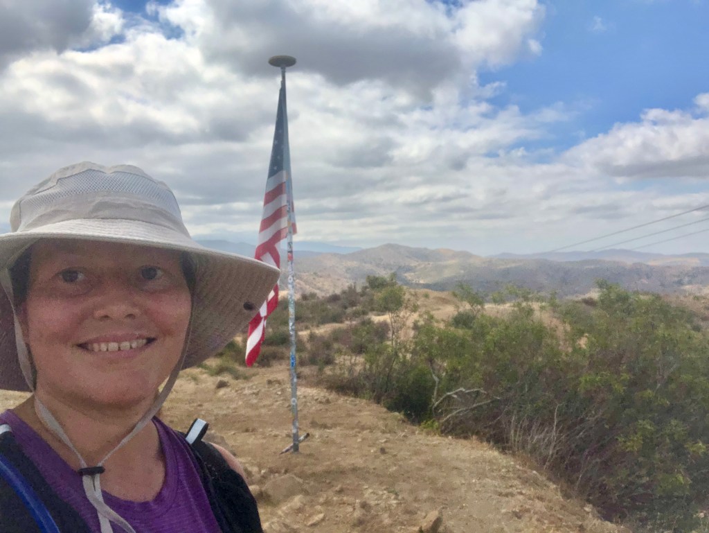 My hike today was 7.5 miles, and just over 1500 foot of gain going up to the ridge. The trail took me down into a valley, and then back up to the highest point, to the flagpole.