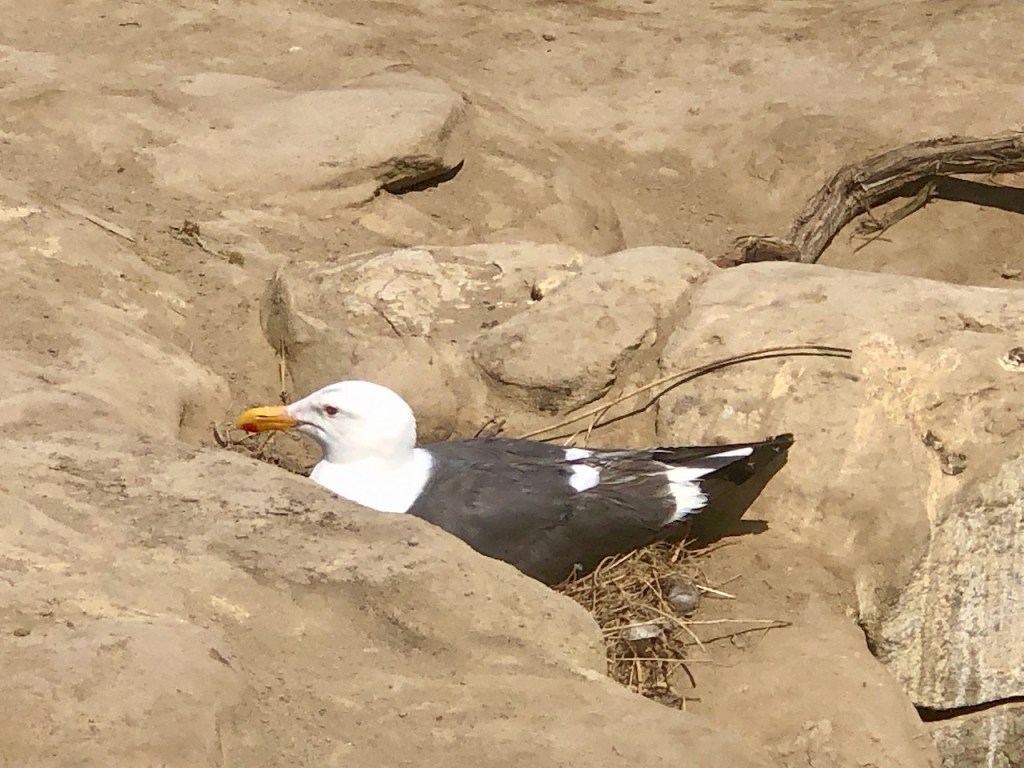 Continuing along the bluffs, I noticed many migrating birds who live in the coastal zone, like this seagull. He was sitting atop a nest, built a bit too close to the tourists visiting this area.
