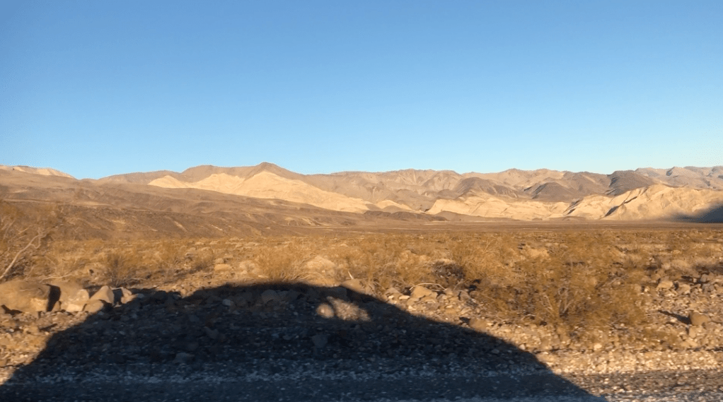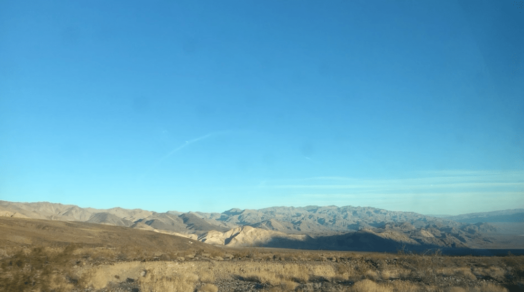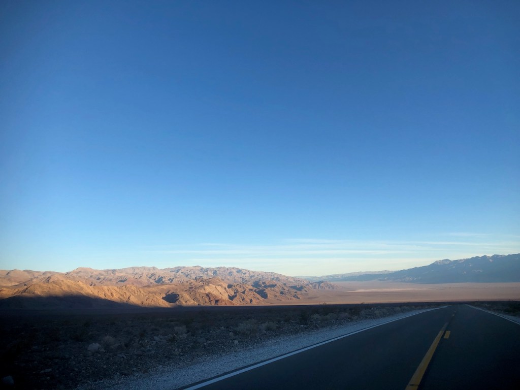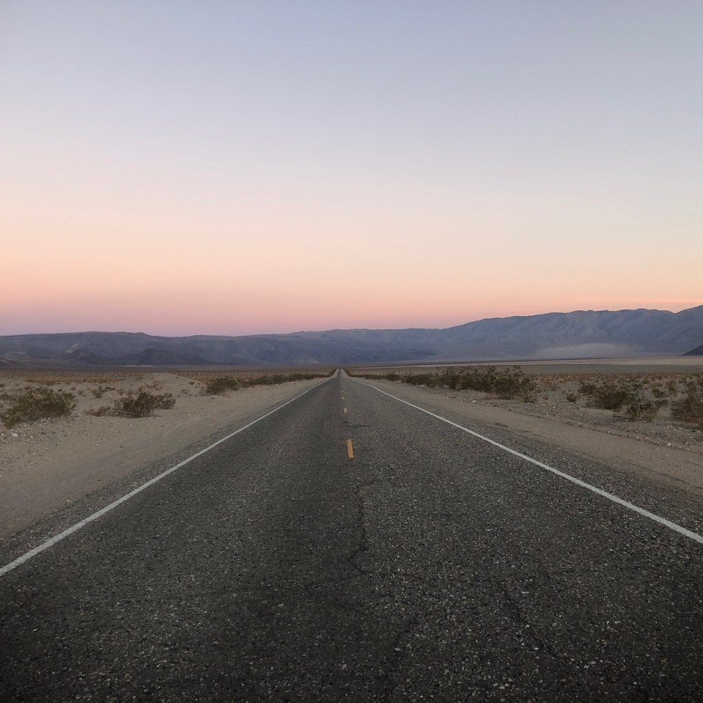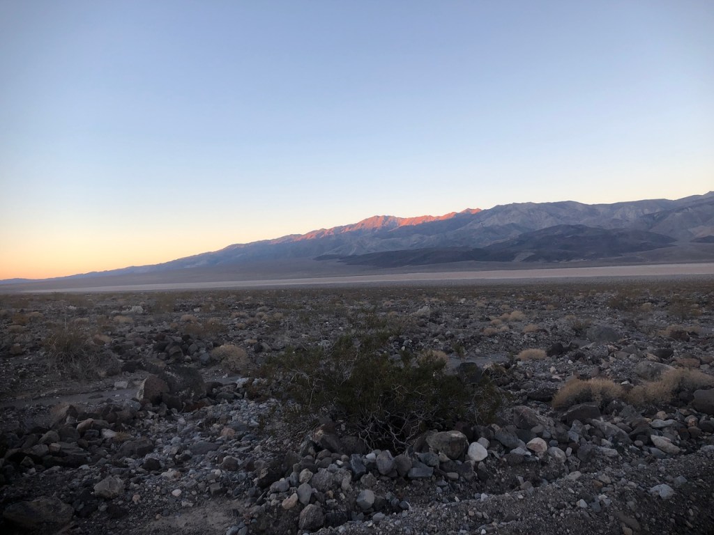I could finally glimpse the outline of the mountains of Death Valley at first light. Otherwise there was total and complete darkness around me, not even another headlight to speak of.