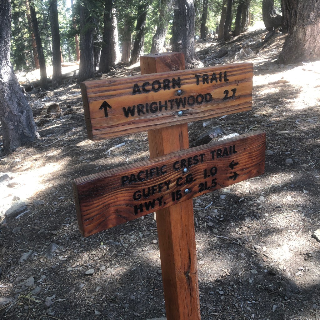 We eventually passed by the sign for the Acorn Trail, which leads you an additional 2.7 miles down to Wrightwood, from the PCT. We knew we were close at this point.