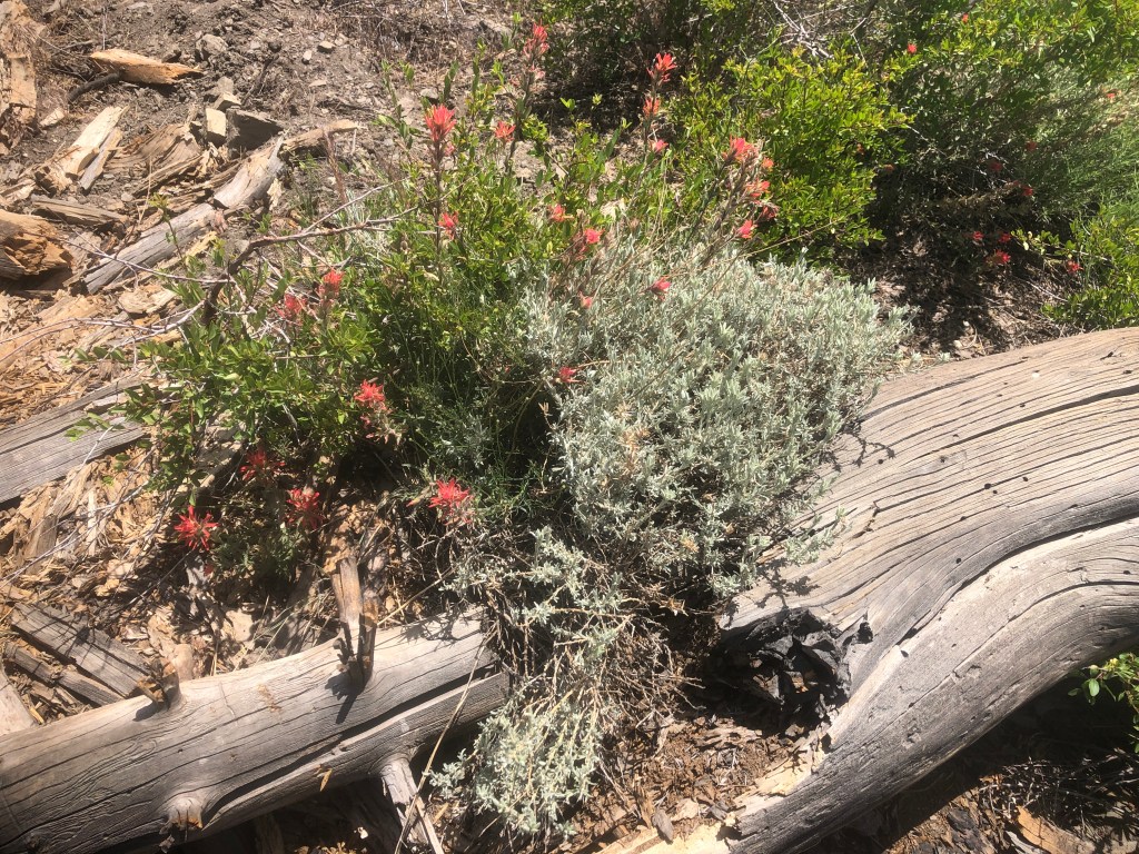 There were lots of thorny bushes around, and we would end up wading through them, in search of the flag. It did not take us too long, and we found it. Alison’s Gaia app, showed another older trail, not on alltrails, which aided us in not only finding the flag, but finding our way back to the PCT.