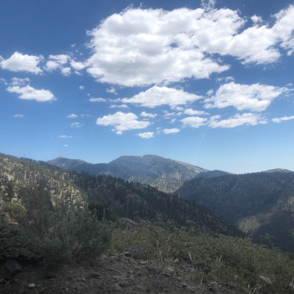 Pine Mountain trail, leads you up to Mount Baldy, but it’s barely visible behind it from this angle. That would be a heck of a climb.