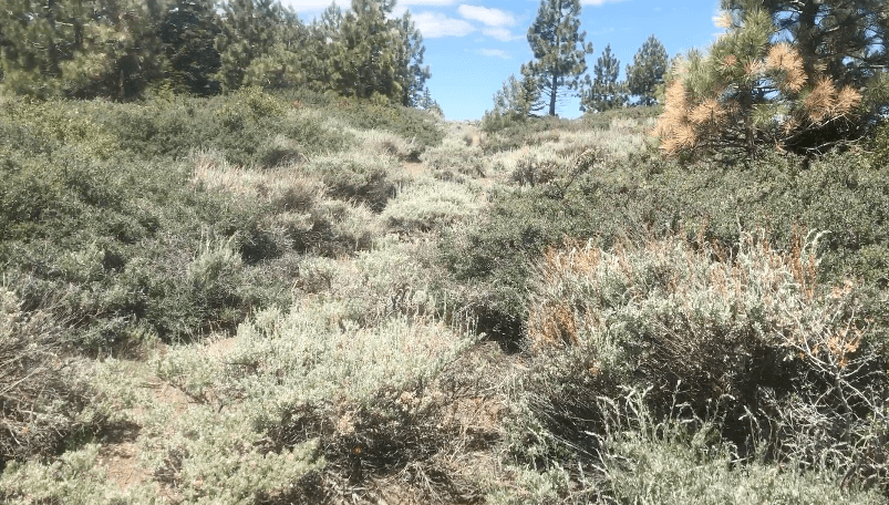Today the mercury would rise to 90 degrees down in Wrightwood, below. This is the nearest town to where I would be hiking, at Inspiration Point. There are several ways to reach Wright Mountain. One way, is to head up the super steep Acorn trail. The second option is park at Inspiration Point, and hike on the PCT, all the way to Wright Mountain (elevation 8488).