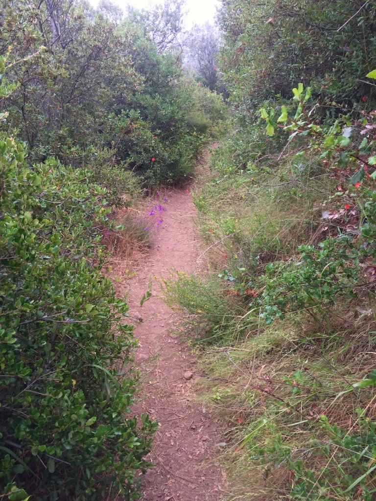 The trail at first is a narrow dirt single track. The sky was foggy and overcast on this particular morning, and perfect for hiking. It was fairly cool, in the mid 60’s, but set to reach 70 later in the day. I was passed by two trail runners early on, and for the rest of the climb, it was basically empty here on a Sunday morning.