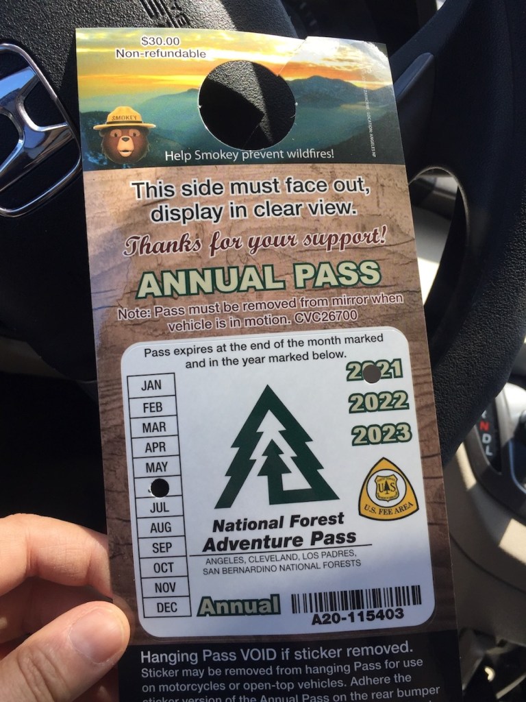 At the Ortega Oaks Candy store, you can purchase a Wilderness pass, good for parking at all National Forest trailheads in California, and to park in the lot, across the street from the trailhead, to the right of the store.