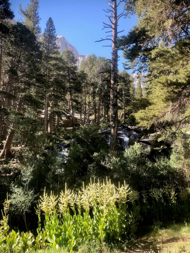 Then I spotted a much larger flowing waterfall. This wilderness was worth it, all the driving, and the climbing. To think you need no permits to go as far as Lone Pine Lake, and the Whitney Zone. I was surprised there were not more people on this trail.