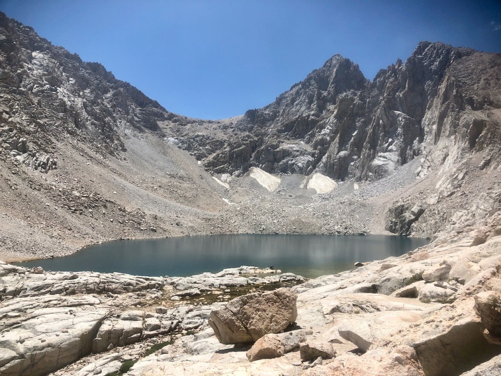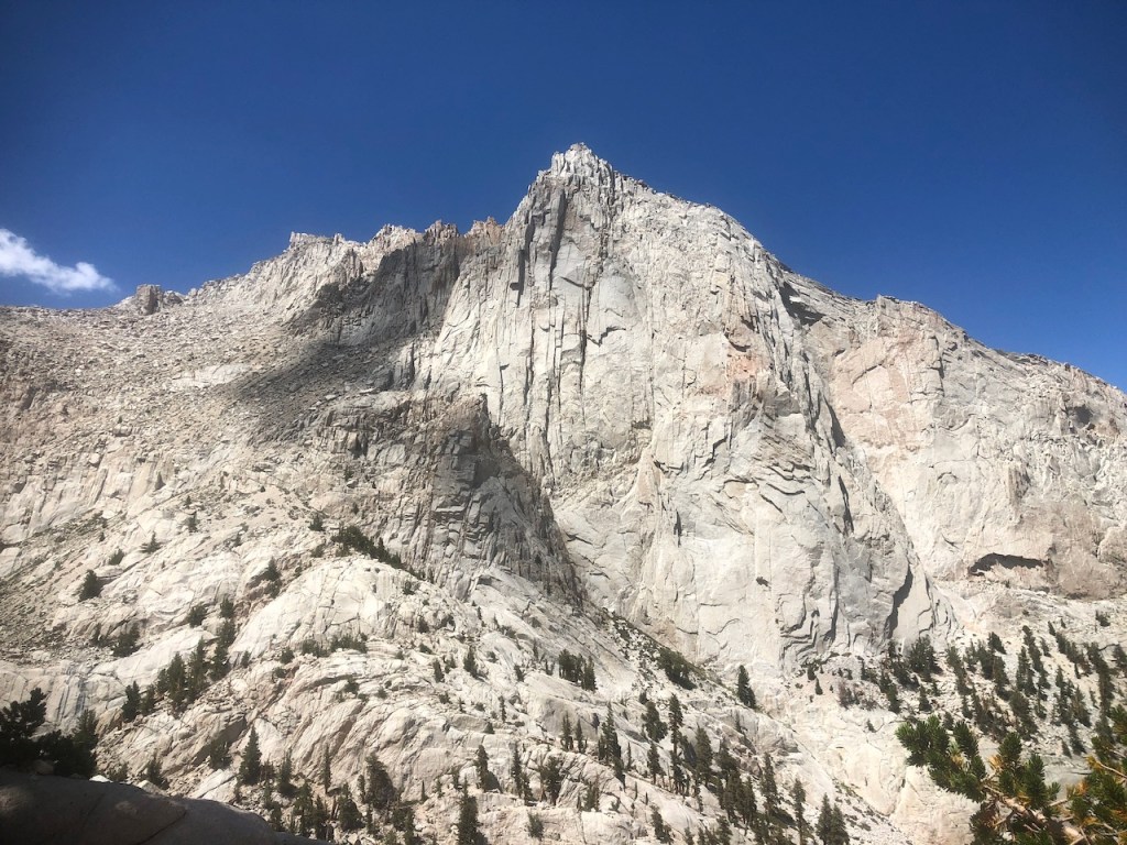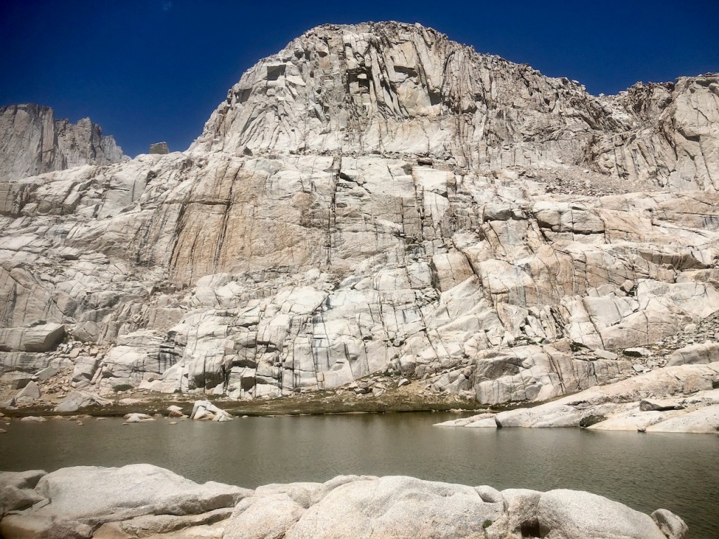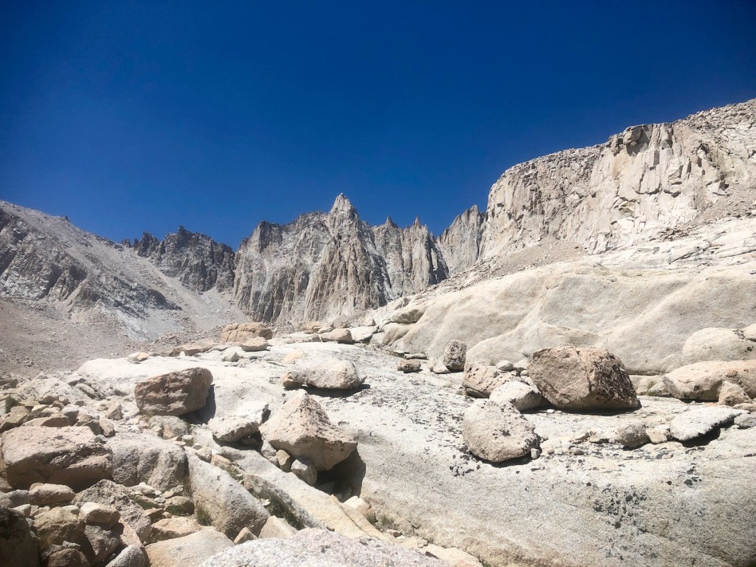 The climb up from Mirror Lake did get a little confusing, as you traverse over large slabs of granite. There were lots of cairns set up, which was helpful. It was like a beautiful amphitheater here, and I started to see pointed, spindly spires, in the distance. I knew I would soon see Mount Whitney.