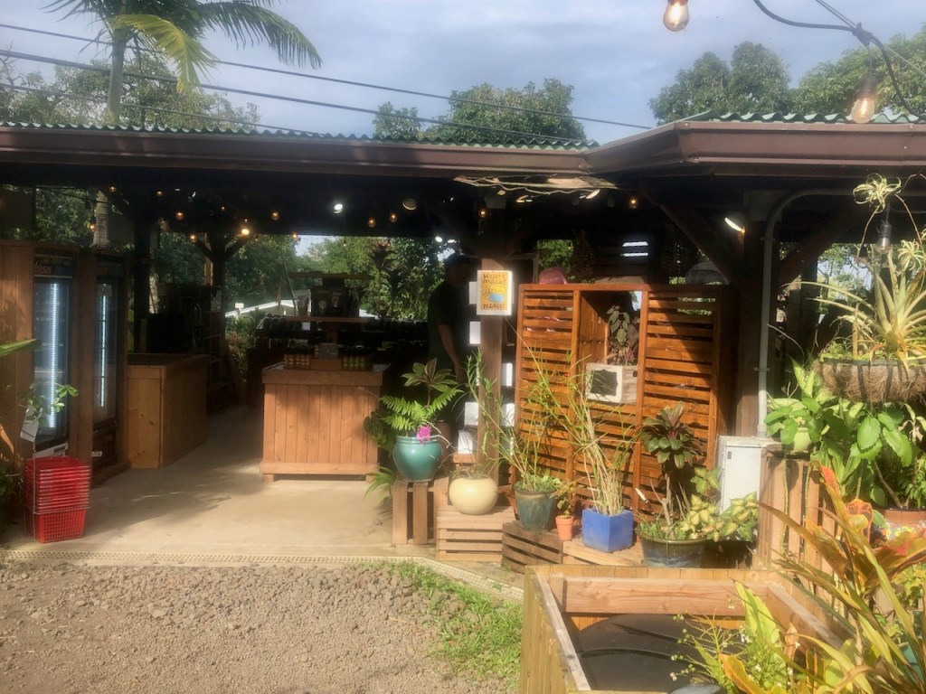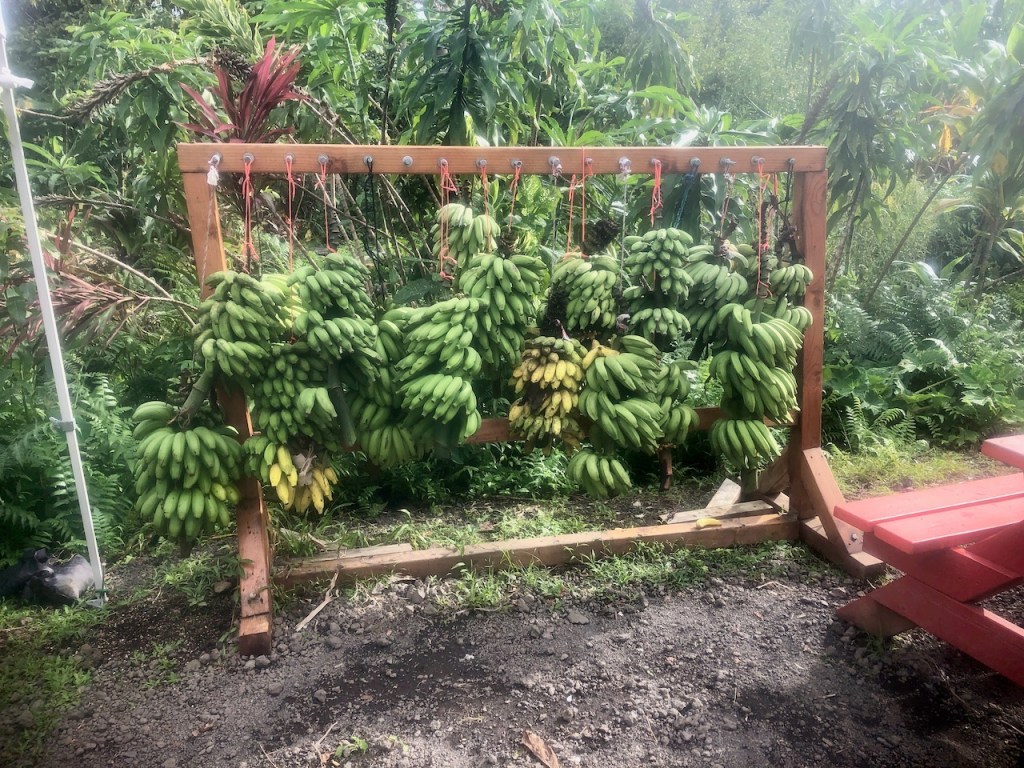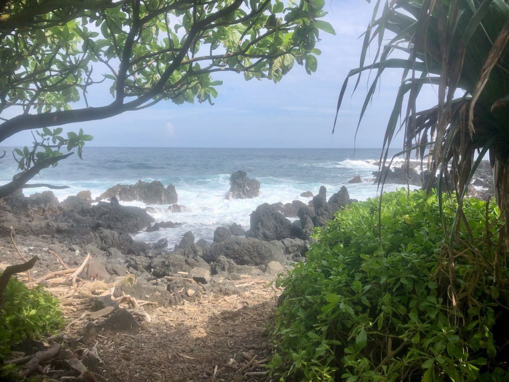 Next we trekked along the Road to Hana, at 20 mph, passed several waterfalls, and eventually came to the turn off for some famous Banana Bread, at Aunt Sandy’s. We got in line and paid, and were told to wait 30 minutes. After which we returned, to be told they gave ours away, and asked if we would like anything else? A good samaritan gave us some of theirs. We accepted Aunt Sandy’s offer and tried something else. Don’t go near closing time.