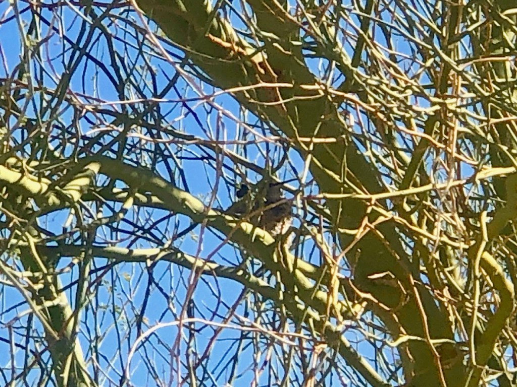 I happened to see a desert hummingbird nesting within the greenish branches of a Cottonwood Tree.