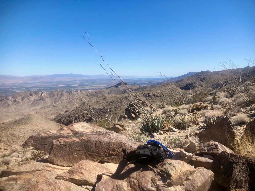 I stopped for a break on top of a giant rock slab, and could see all the way to the Salton Sea from here.