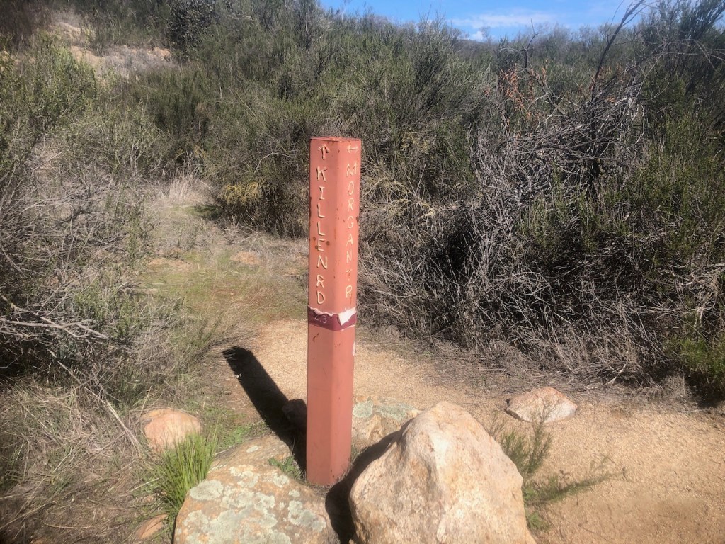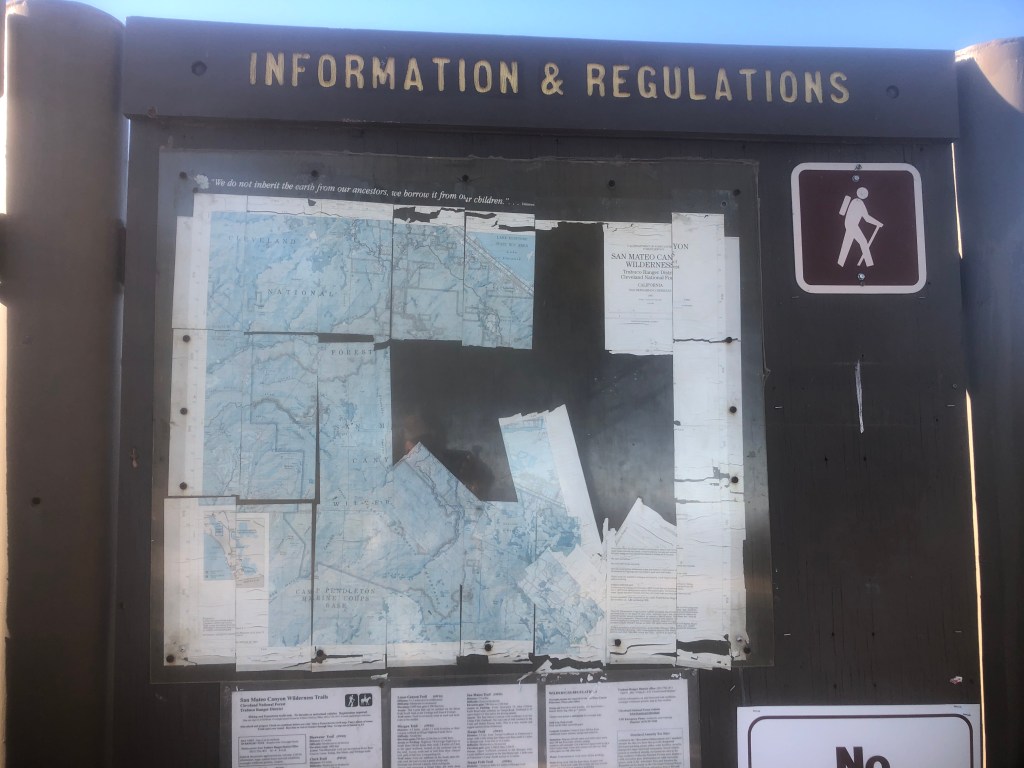 In order to not miss the trail, be sure to make a sharp left at the trailhead sign-in box, which is about a ¼ mile down the trail. The trail to San Mateo Peak is unmarked.
