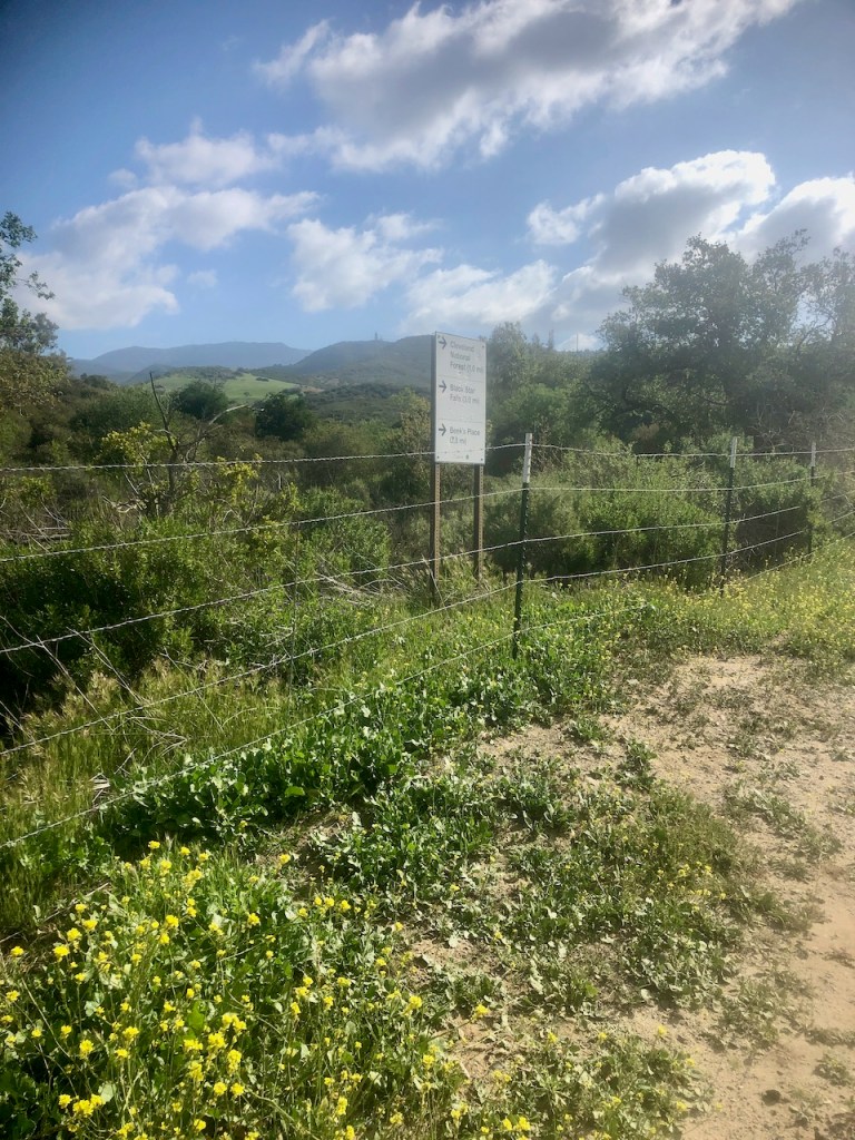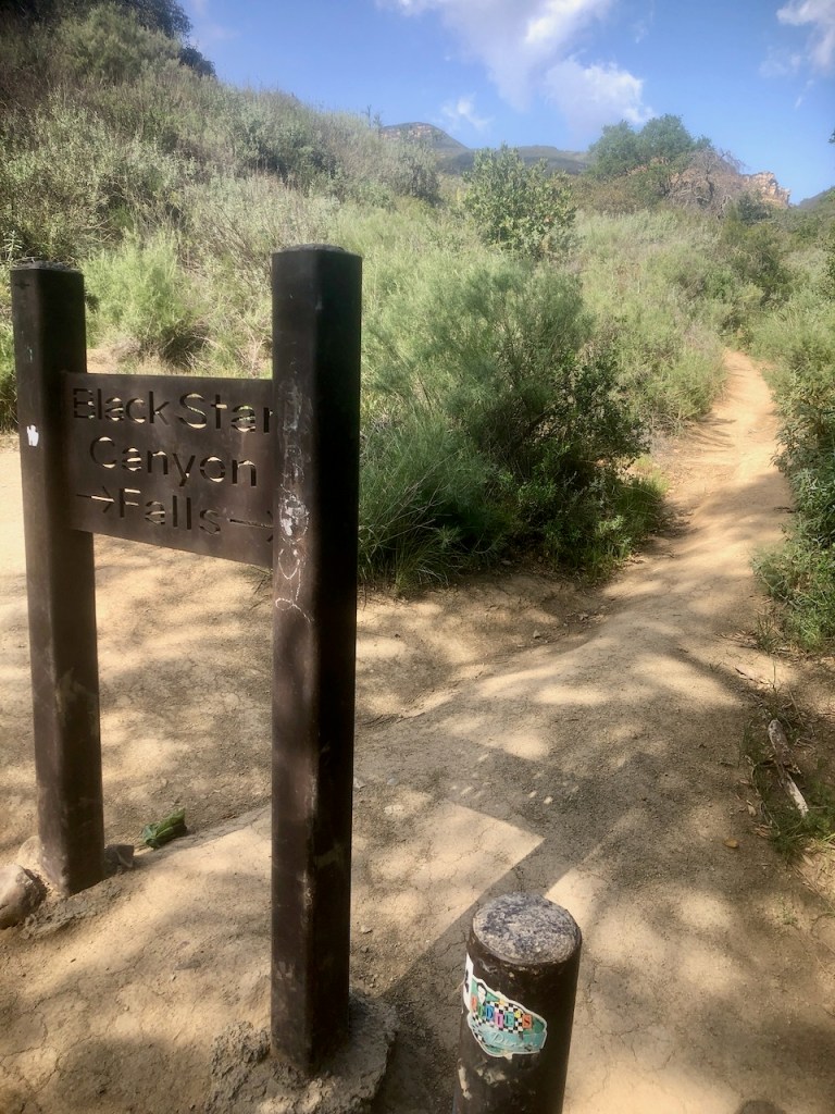 This sign is the turnoff for Black Star Falls, which is a sharp right, down a hill, through an oak forest. Be forewarned, the poison oak is abundant here.