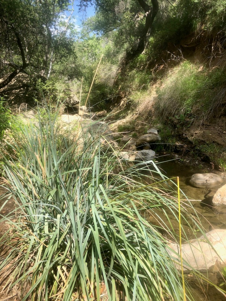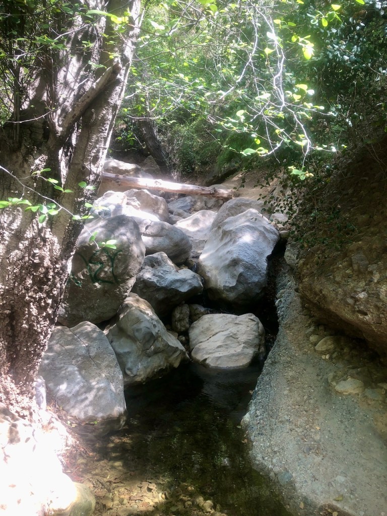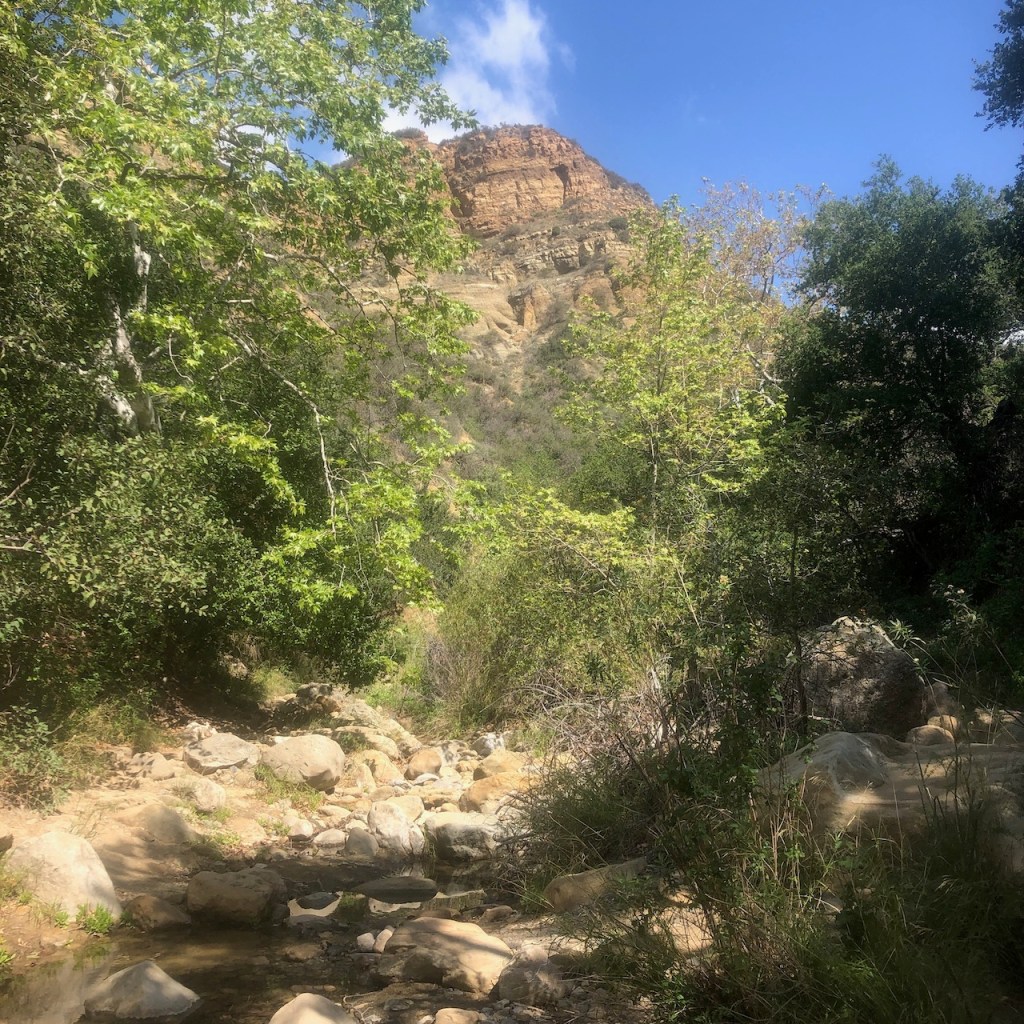 The creek was barely flowing, which is a good sign there will be a waterfall, but also, that the hike will not include wading in deep water to reach it. I was content to just see the falls, and was not looking to go for a swim today, or I would have brought water shoes.