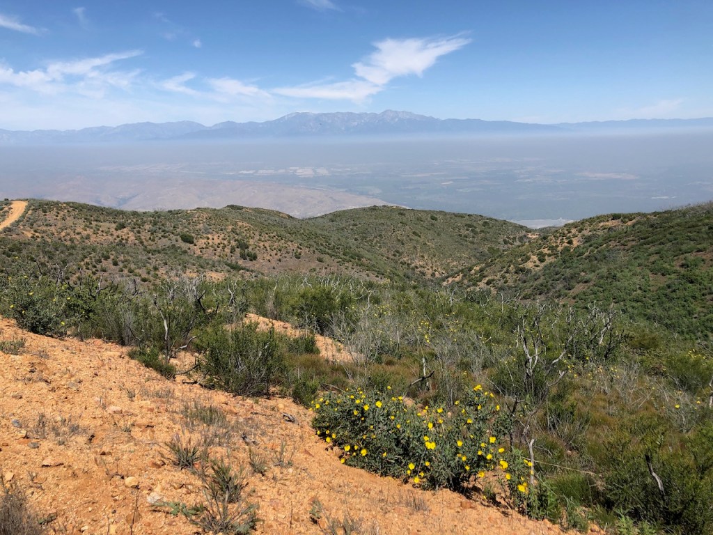 I could spot some power lines in the distance, and what I believed to be Sierra Peak, even further off past them, marked by cell towers.