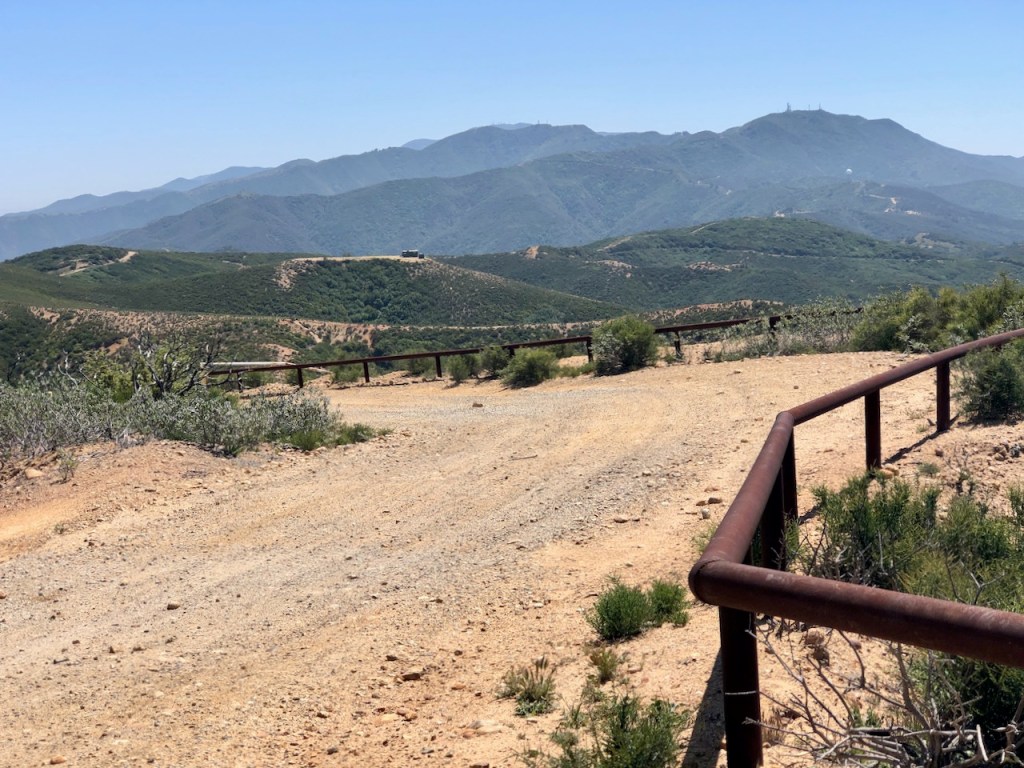 Glancing to my right, as I neared Sierra Peak, I could see Pleasants Peak in the distance, among others. I was now at Main Divide Rd, which is only open seasonally to vehicles. It is a wide, unpaved rough, and sometimes very rutted fire road.