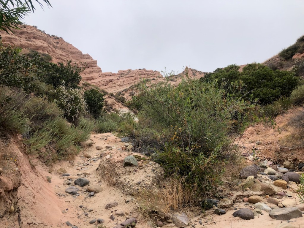 We hiked all the way to where the trail dead ends beneath scenic wavelike red rocks, reminiscent of Sedona, Arizona or Utah. But here it is to behold, right here in Southern California.