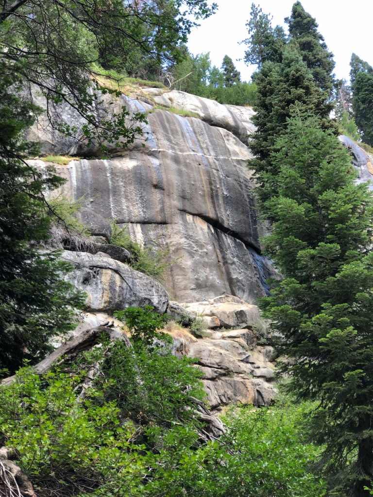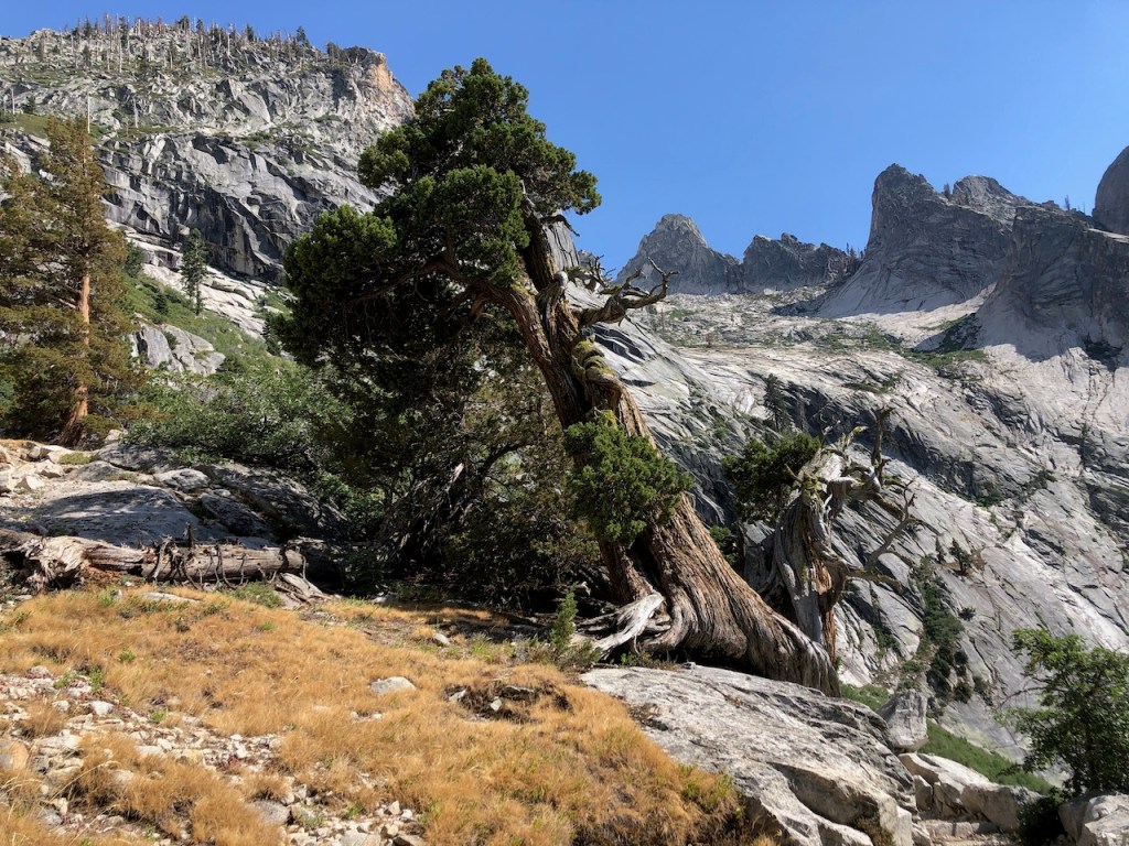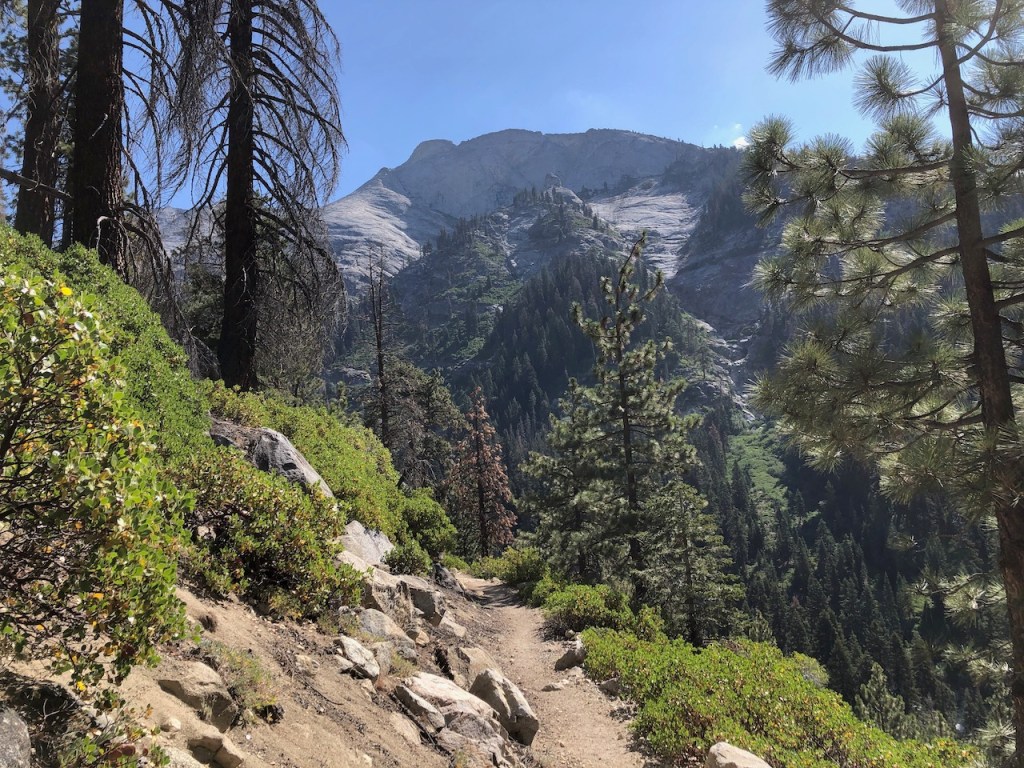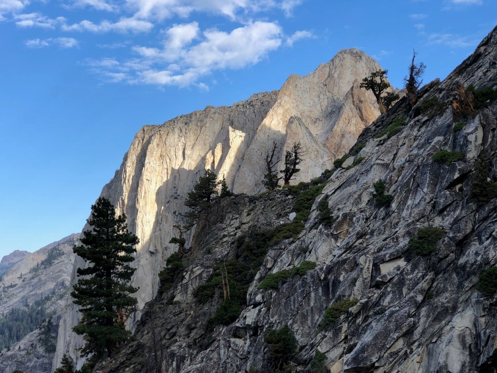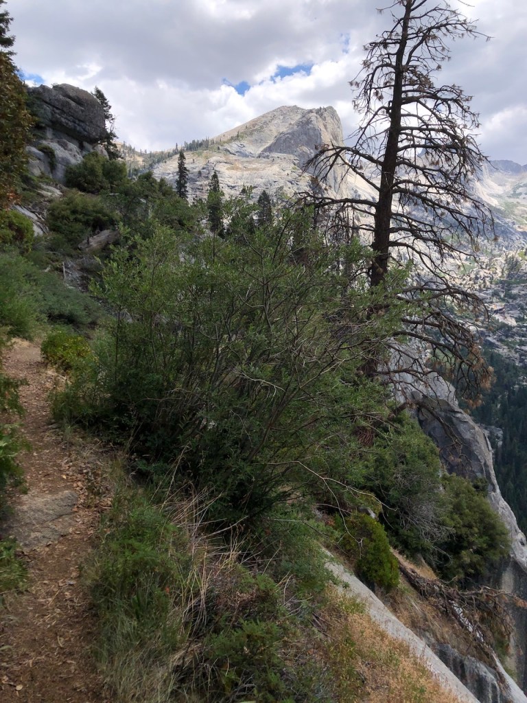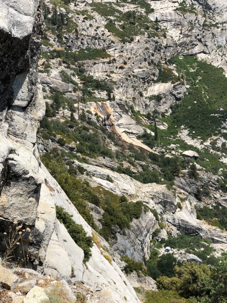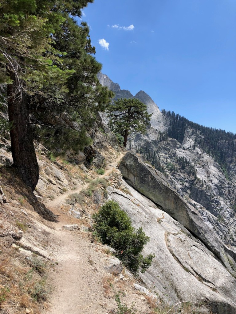 The sun was out, and there was not a cloud in the sky, as we edged closer to the Great Western Divide. The trail began to hug the cliffside, as it descended down towards Buck Creek.