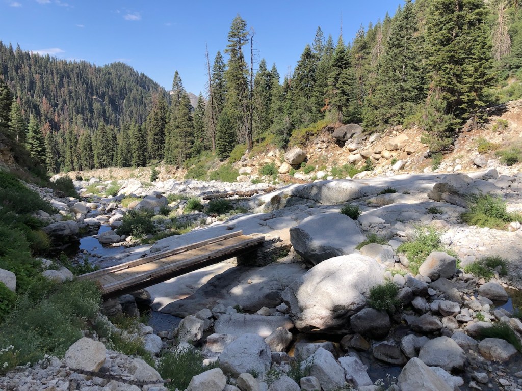 This was another excellent water source, about 12.5 miles along the High Sierra Trail. This gorge can flood, but fortunately the bridge was intact.