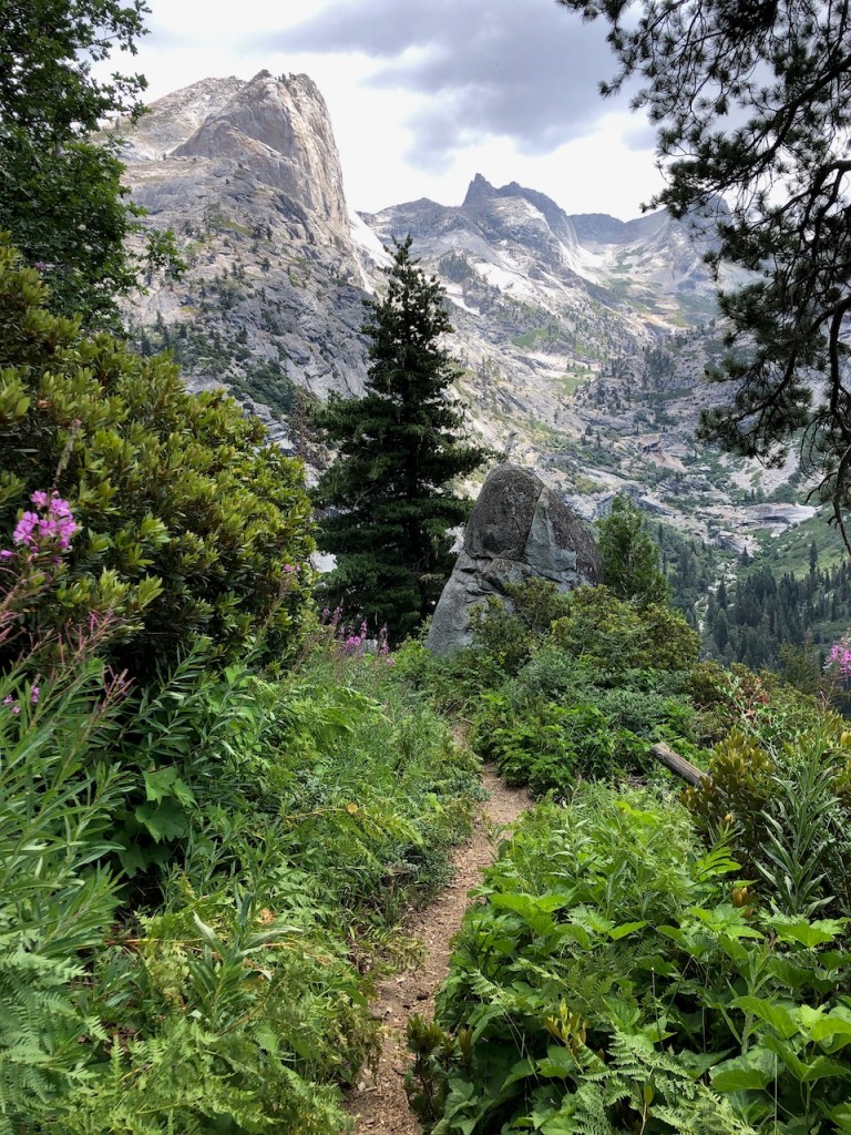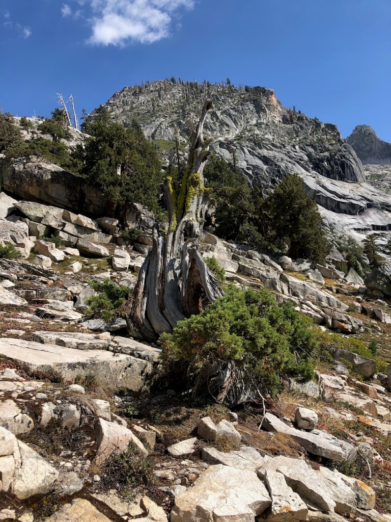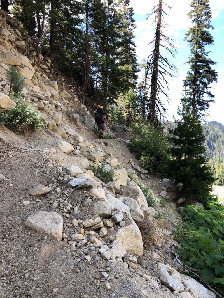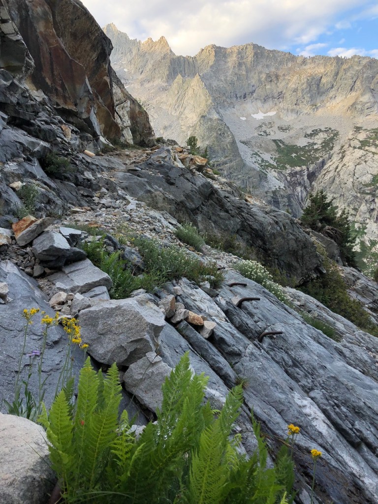We were climbing higher into the alpine zone of Hamilton Lakes. As I hiked on I tried to spot where the trail was headed, and over what pass, but it was hard to make out.