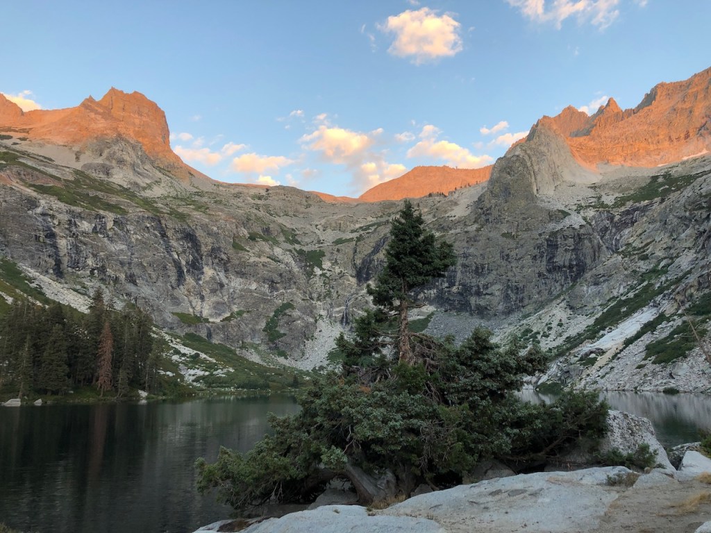 In morning I was greeted by that alpen glow. We gathered our stuff up as quickly as possible, for the big climb to Precipice Lake.