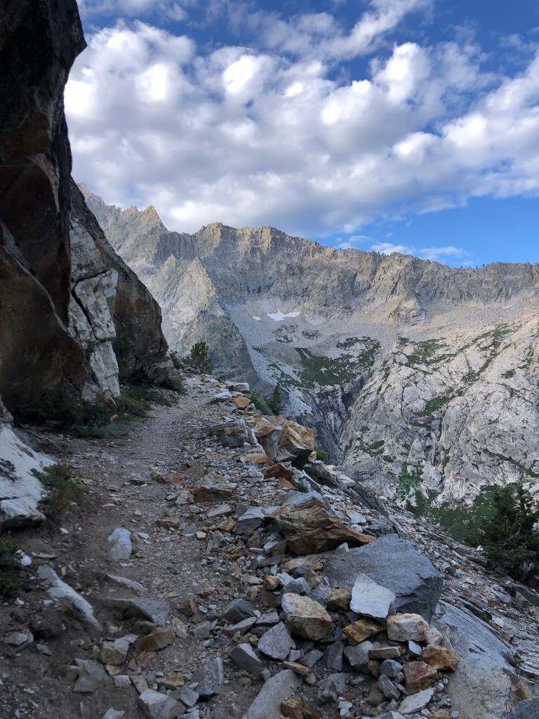 We made a point of leaving before dawn, since this climb would be tough, and we wanted to maximize our chances of success. Our goal was not only making it to Precipice Lake, 3 miles away, but over the Kaweah Gap, before possible thunderstorms rolled through.