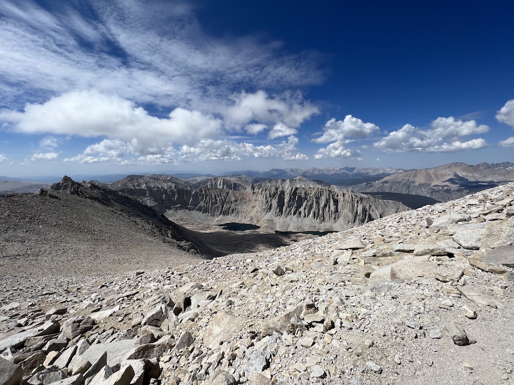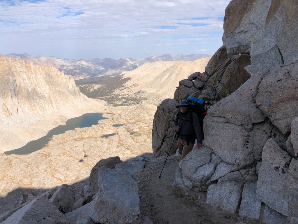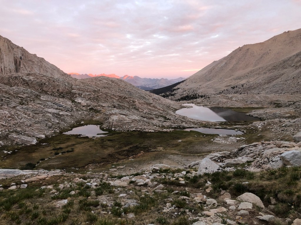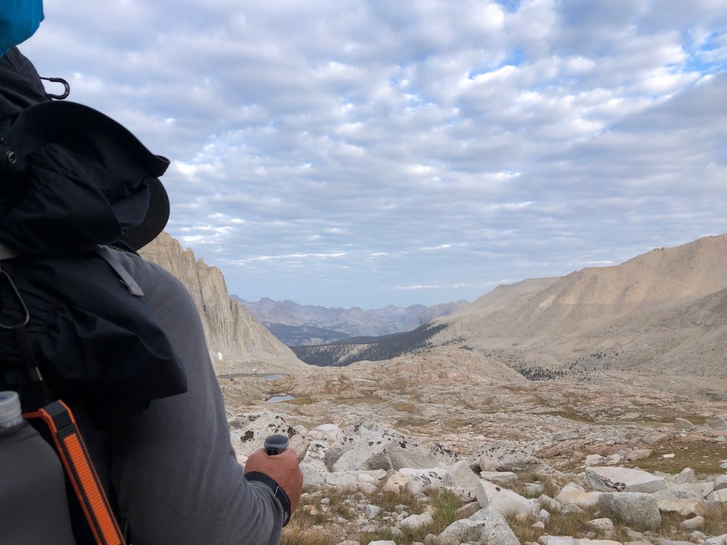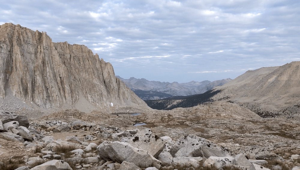 Looking back towards Mount Muir and Trail Junction, and the glacial peaks of the southern Sierras.