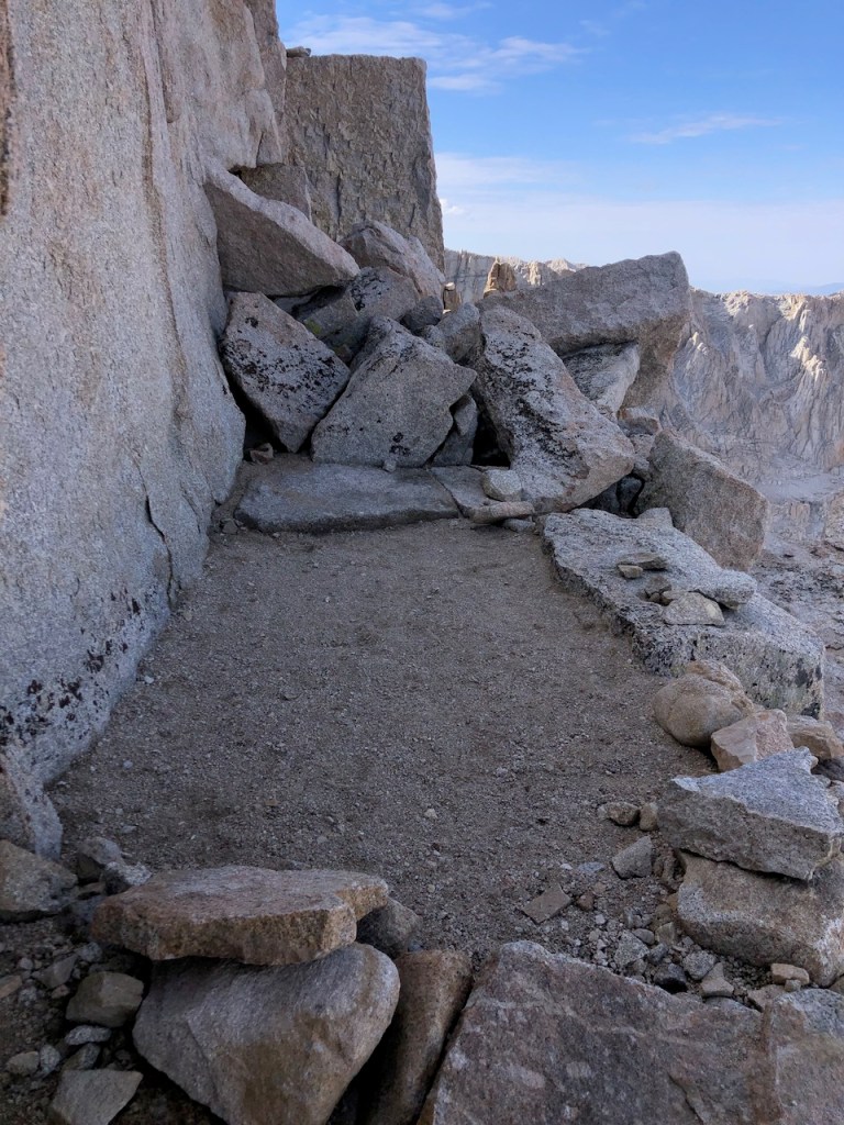 Standing by the ski hut I recalled a couple of fast hiking young women who I passed, and chatted with who were hiking the JMT. They had mentioned they would watch the sunrise on Whitney, and one of them talked of wanting to sleep in the ski hut. I wondered if they had. It was cramped, and full of hikers when I arrived so I did not venture in, but I did take a peek inside. There was a trail register out front, which I proudly signed. I love old stone buildings like this, and historical places. Now I had made history, making it up here to the ski hut, and summit of Mount Whitney.