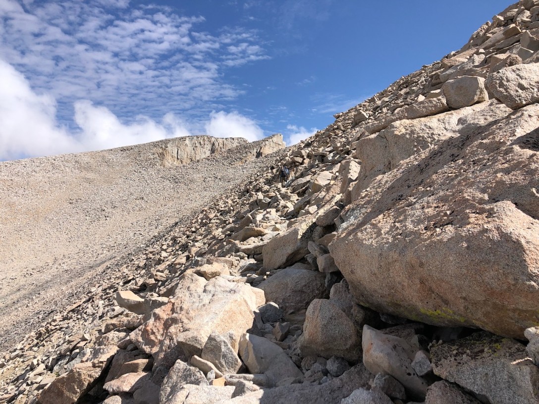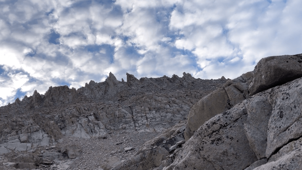 Looking back at Keelers Needle. A gentleman we ran into hiking on up from Guitar Lake had suggested we hike up Keelers Needle. I did not climb it or Mount Muir on this trip, but I heard plenty of people talking about it how they were planning to. So easily bagging two peaks and a prominent outcropping, is possible, if you’re up for the challenge. I imagine it would have added an extra hour at most, to climb both. But we were here for Mount Whitney today.