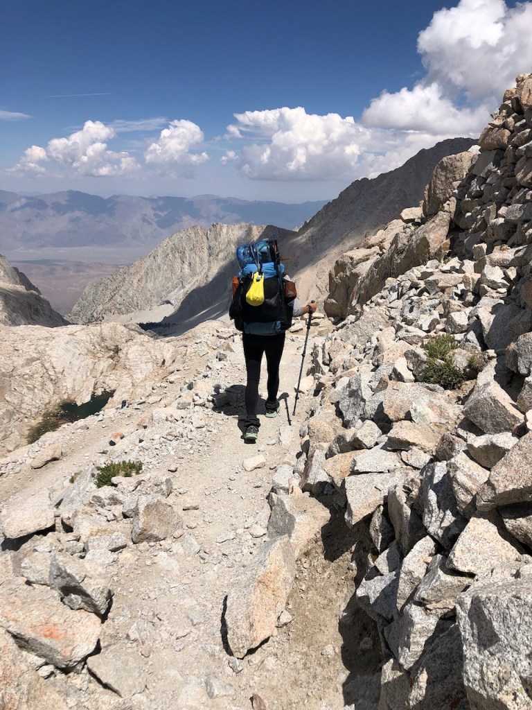 As we stopped to rest again, we met a nice older gentleman, who told us about his hike on the JMT, before passing us. We were passed about twenty times on the way up, as we took our time, and a rest break about every switchback or two. We met several more hikers coming from the JMT during our breaks. This was the most social we had been on the trail all week. You go into nature for peace and quiet, not to chat it up necessarily, in a large group. At least that’s how I feel about being too chatty on trail. It’s always nice to meet people and hear their stories though.
