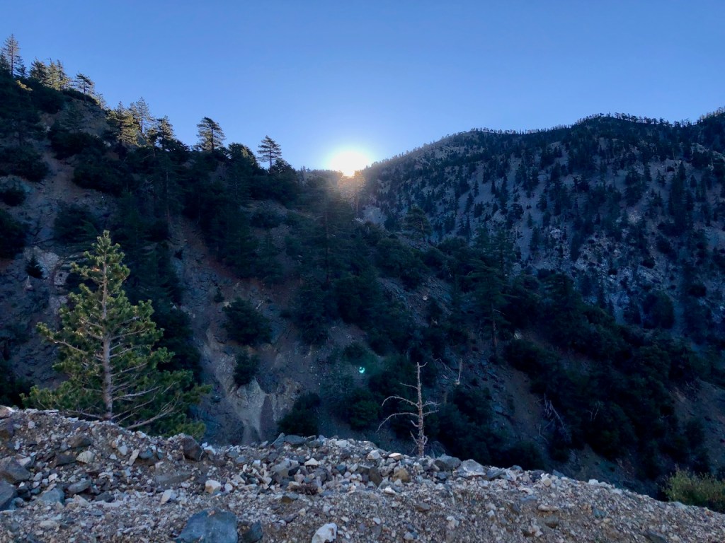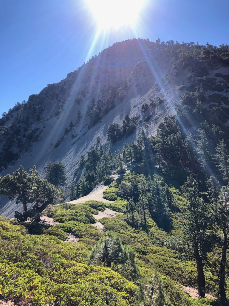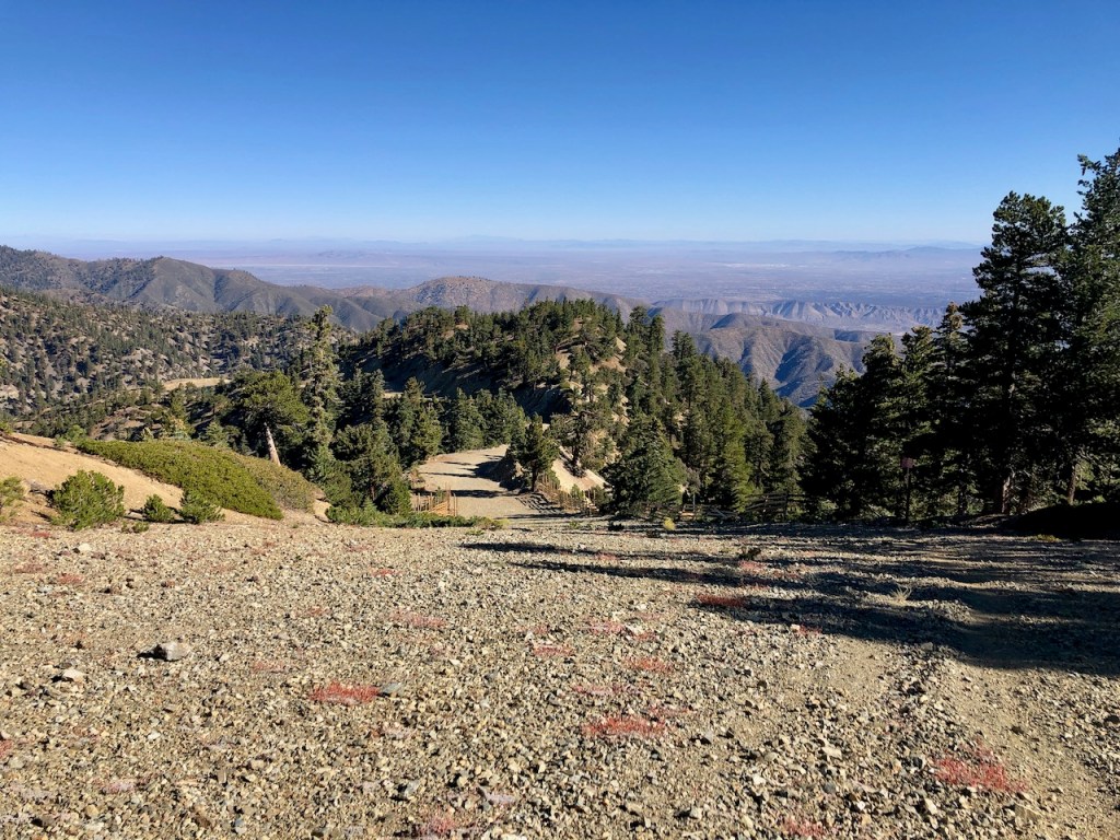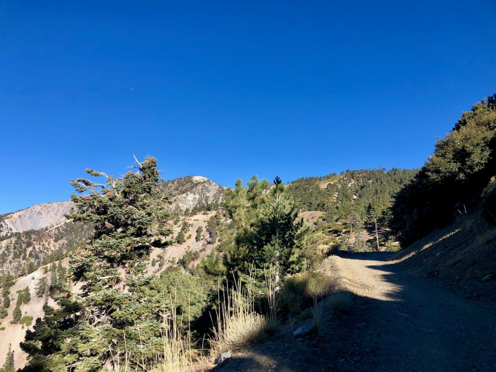 I would be hiking up Mount Baldy Rd. from Manker Flats, passing “the Notch.”