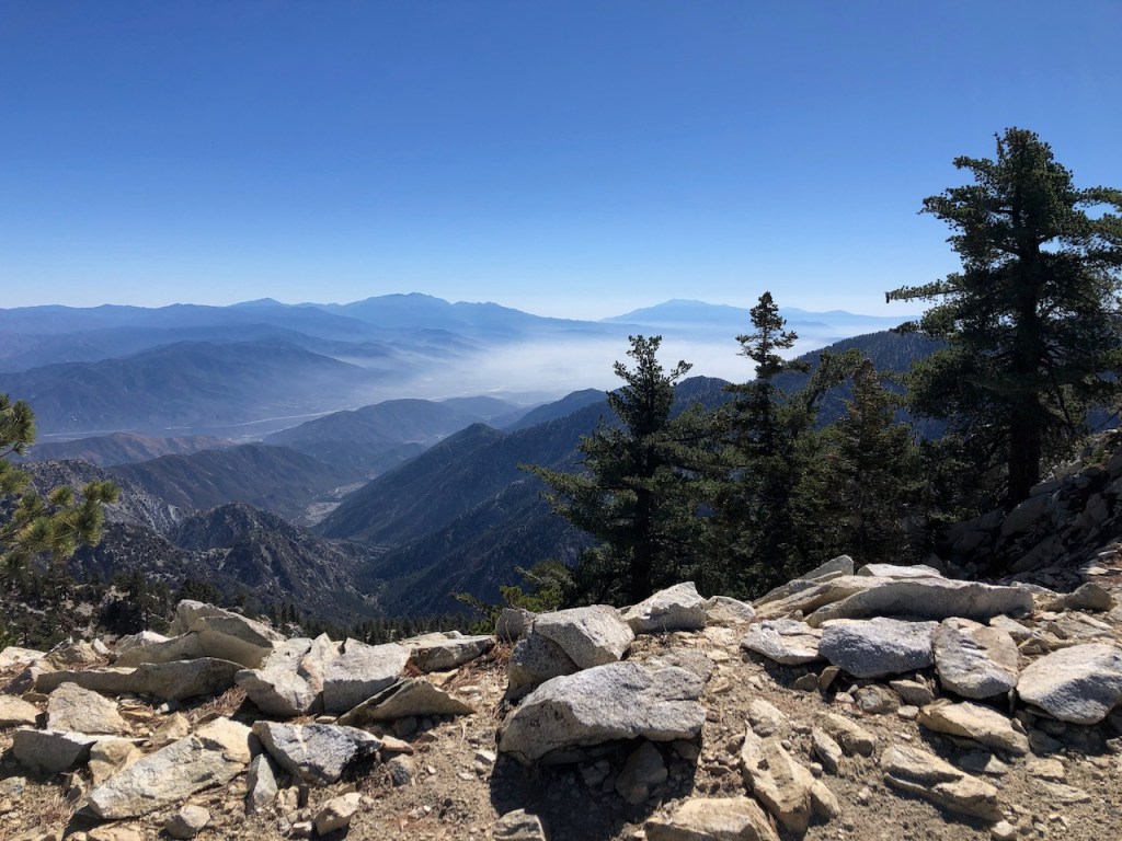 I couls spot West Baldy, Mount Baldy, Pine Mountain, and Mount Harwood in the distance.