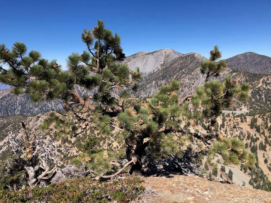 The pines at this altitude always have this windswept quality about them, as if they are barely hanging on.